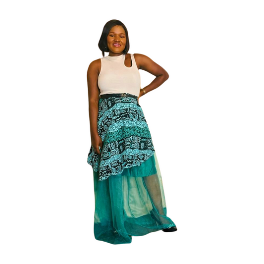 Zuri African Print flared satin net skirt