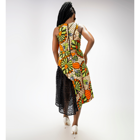 Obianuju African print cut out flared dress for women