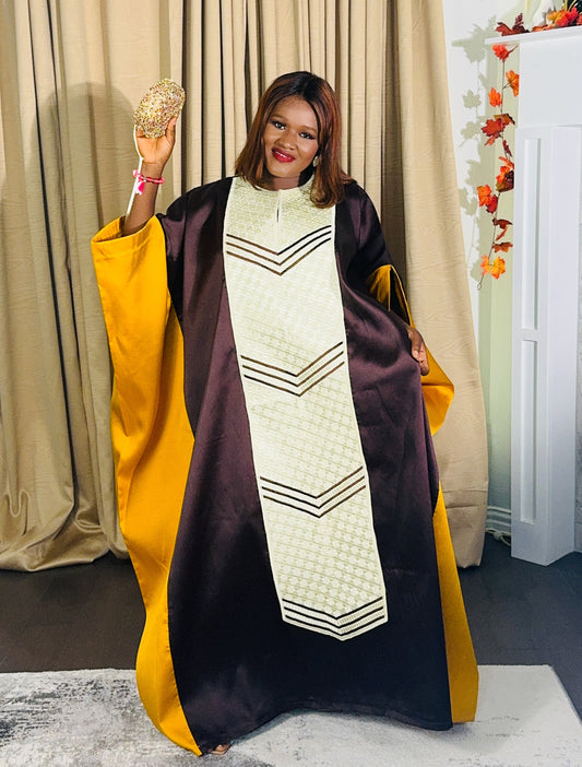 Mide Embroidered Rich aunty luxury Bubu(Brown)