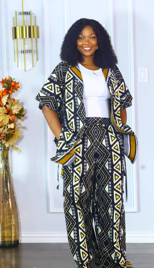 Adedayo aso oke and ankara kimono shirt & baggy cargo pants