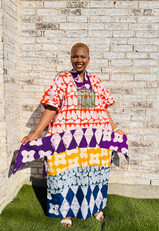 Adenike women’s Batik African print Bubu Kaftan outfit (Orange)