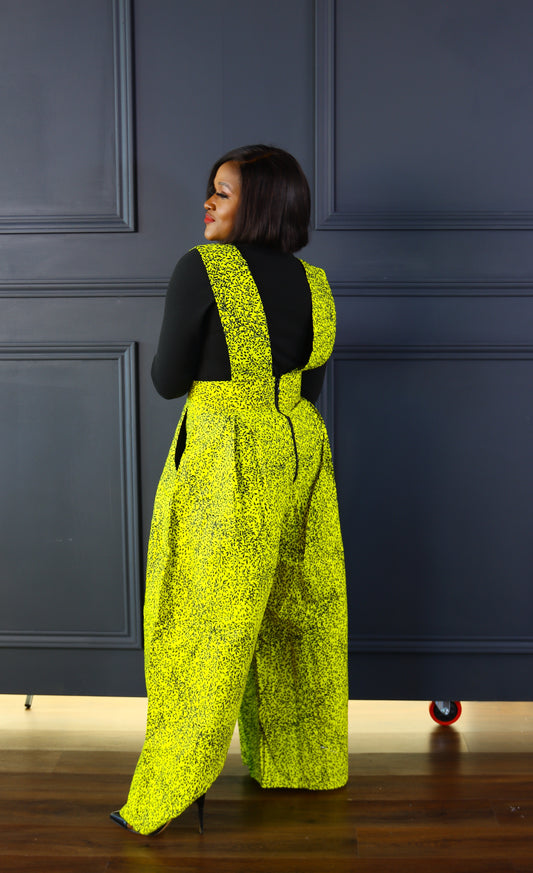 Adaobi African print pinafore palazzo jumpsuit (white)