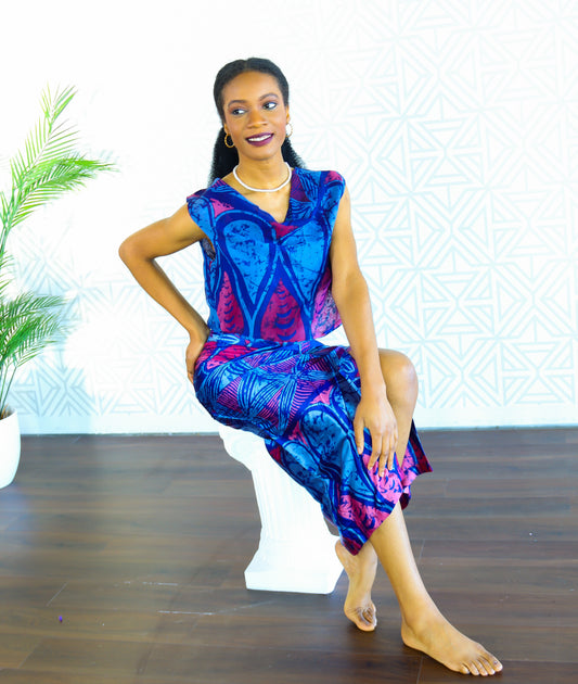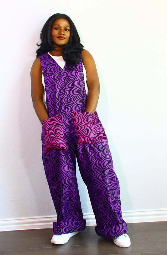 Thrive african women ankara print Dungaree with front pockets (Purple)