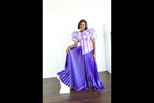 Tomisin Ruffled neckline Victorian corset blouse and plisse pant set