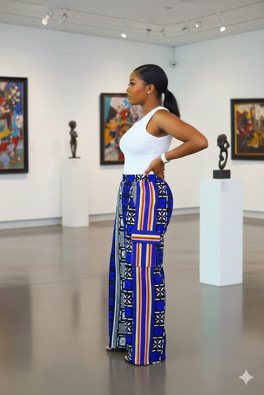 Faderera African print and aso oke baggy maxi pants (Blue)