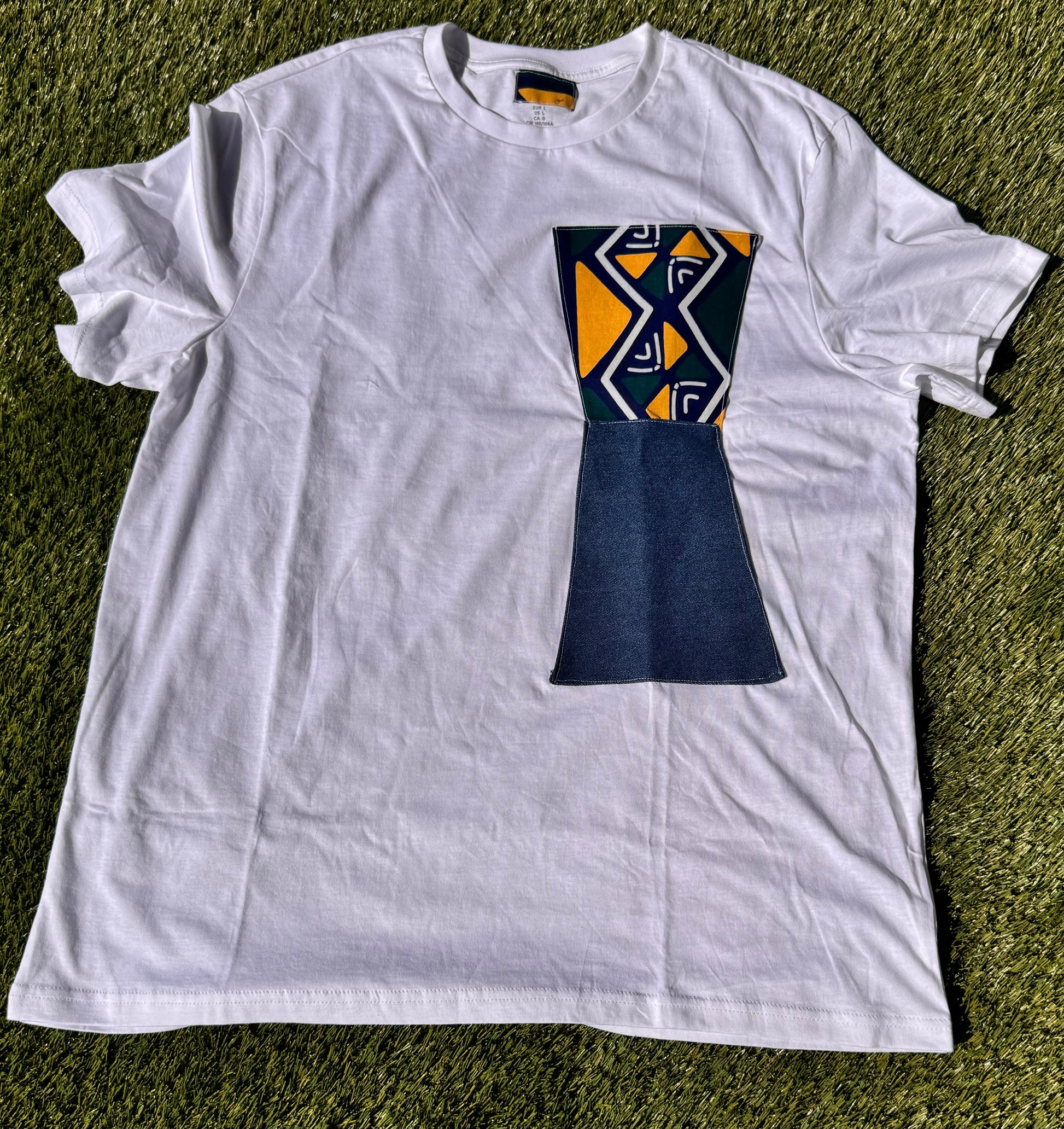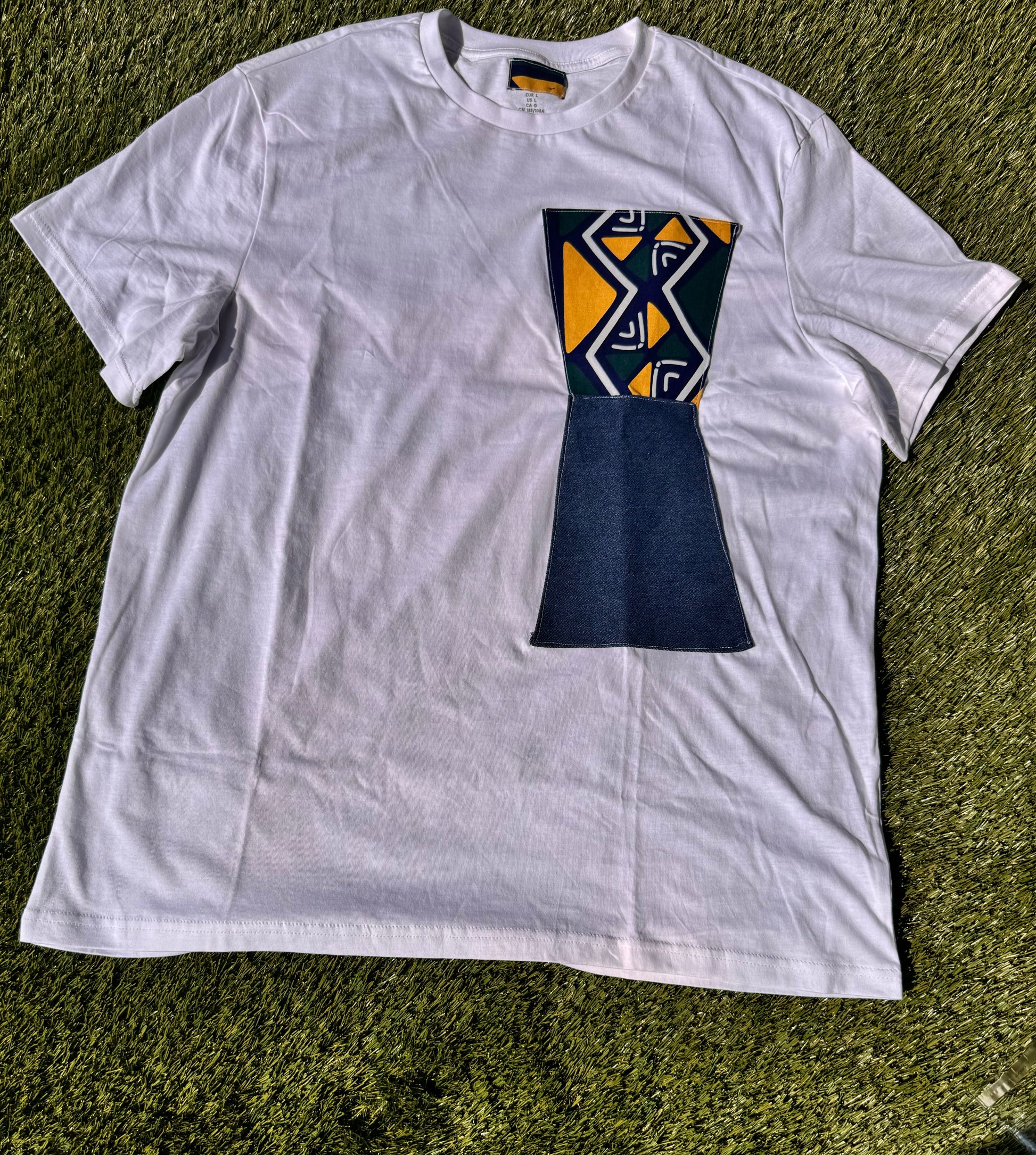 Add a touch of African culture to your wardrobe with our Abana Afrocentric Tshirt for men! Made with breathable cotton, this tshirt features a unique denim and tribal print ankara design on the front. Perfect for any occasion, this artistic shirt will bring out your bold and confident style.