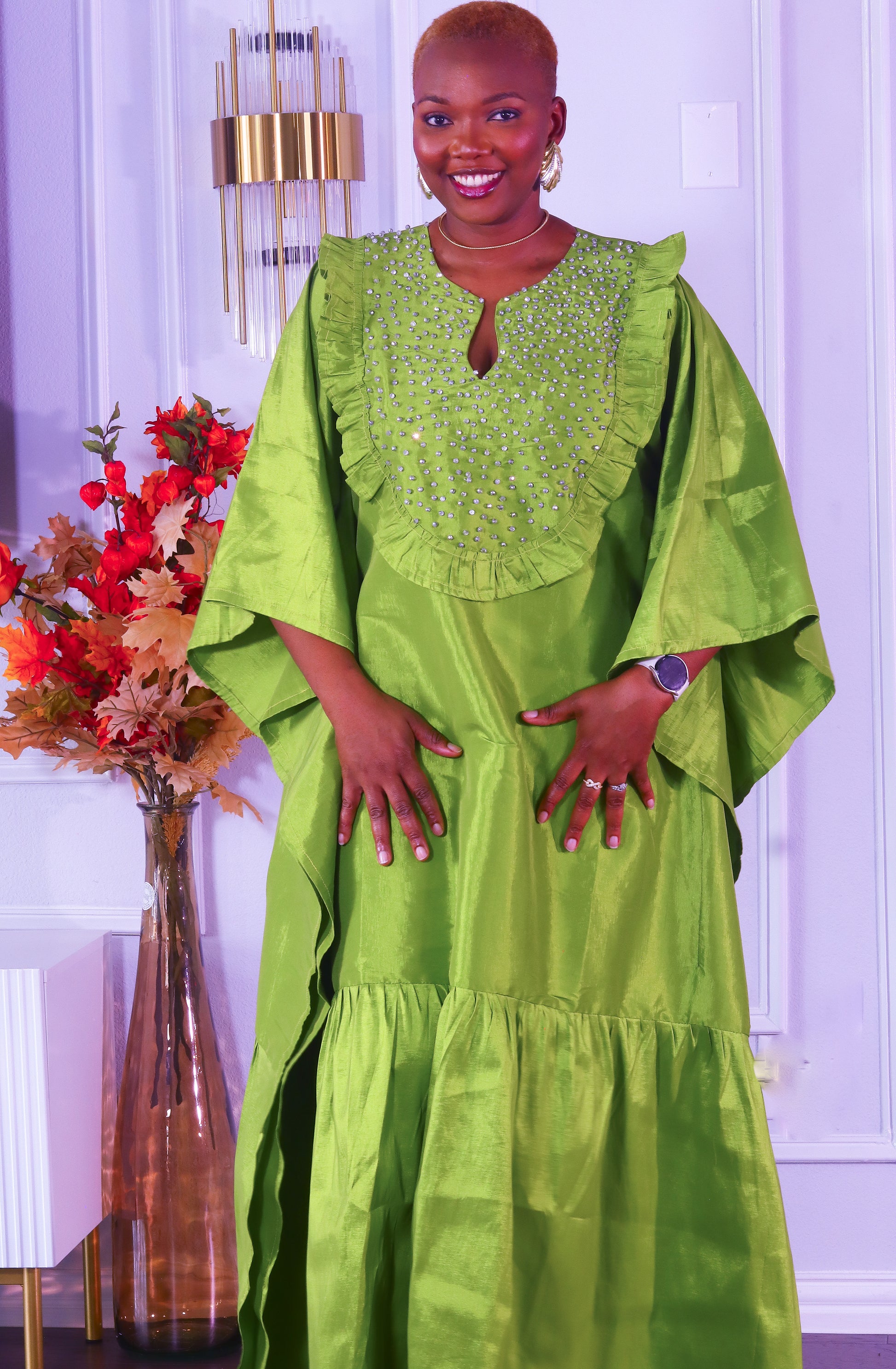 The Achalugo Bubu Kaftan blends elegance with distinct design, featuring a neck and chest area adorned with luxurious beads and delicate pleated ruffles. Its graceful pleats from knee to hem enhance movement and sophistication, while the lightweight raw silk fabric ensures comfort and a refined drape. Perfect for those who appreciate unique, high-quality fashion statements.