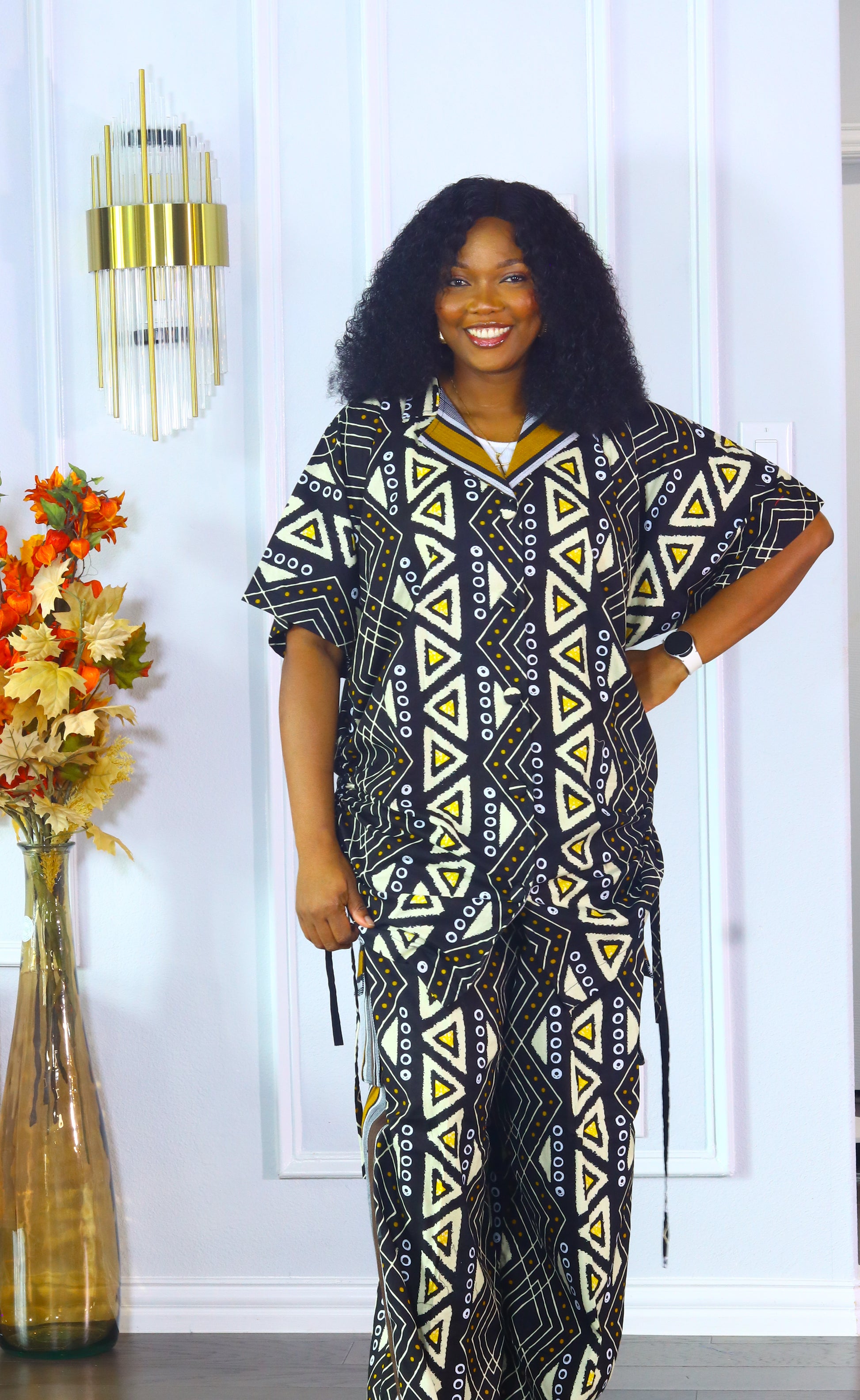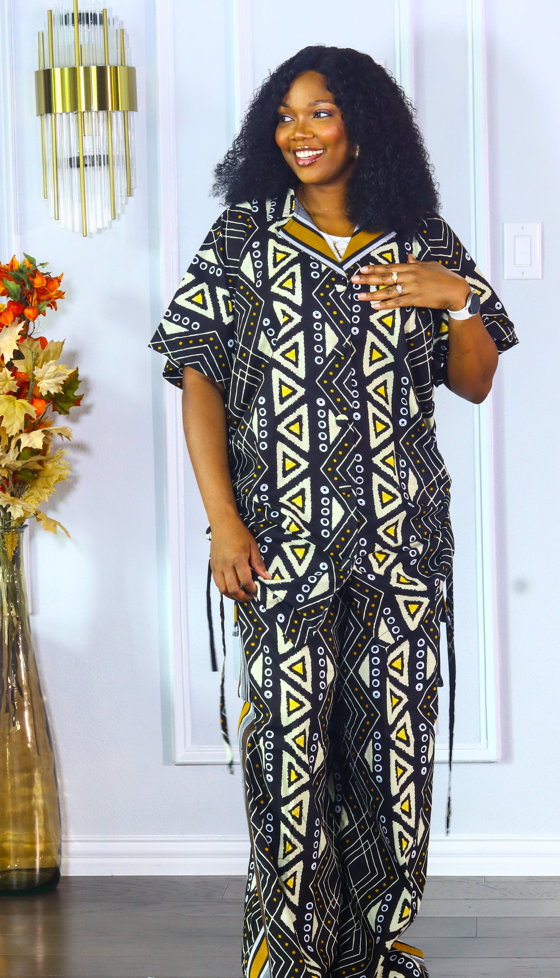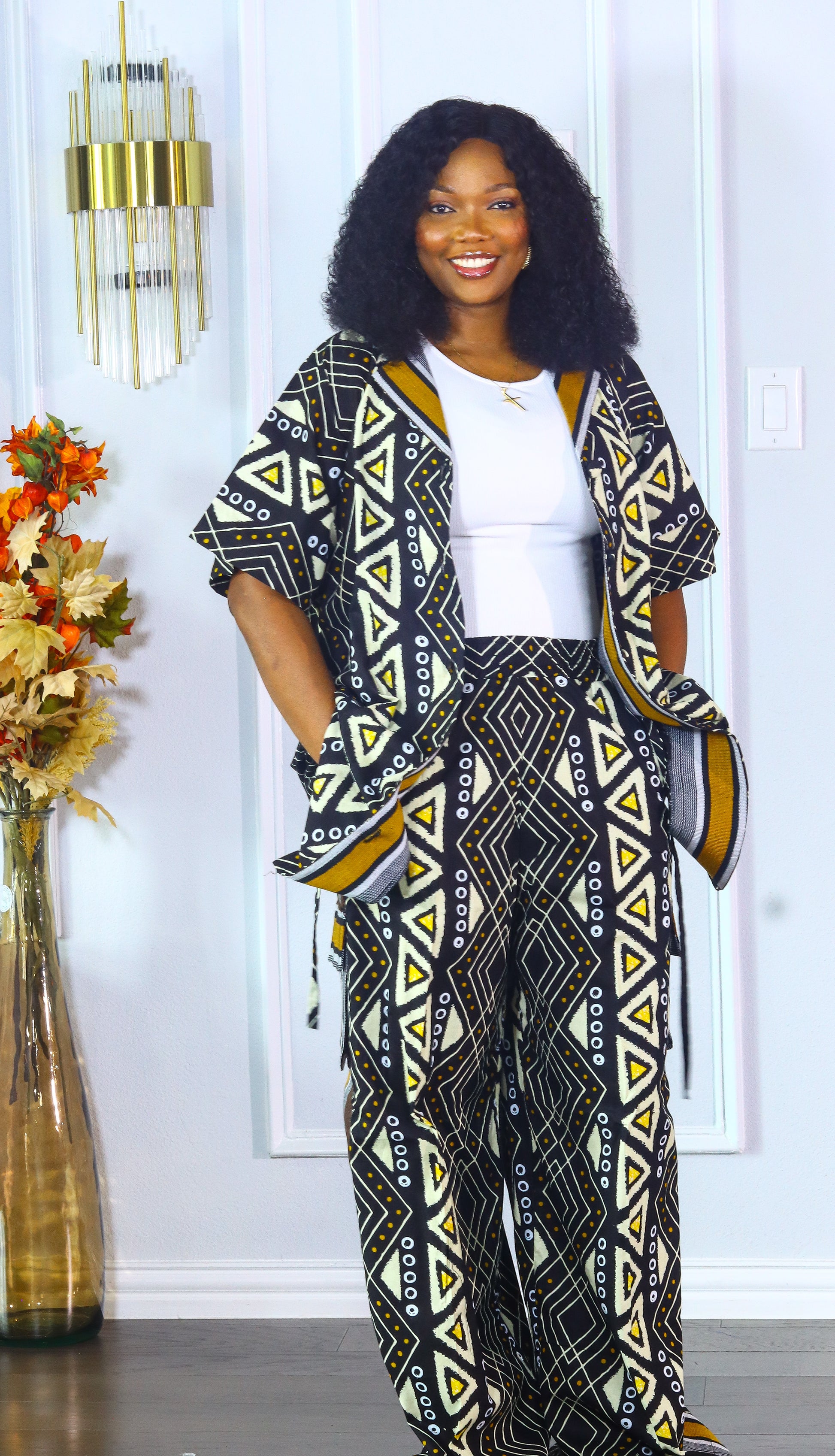 Crafted from 100% organic cotton, the Adedayo Aso Oke and Ankara Kimono Shirt paired with baggy cargo pants offers exceptional versatility. The kimono top can be elegantly styled as a jacket, shirt, dress, or even a coordinated two-piece set, allowing for multiple refined looks. This sophisticated ensemble combines traditional fabric with modern design, delivering both style and lasting value.