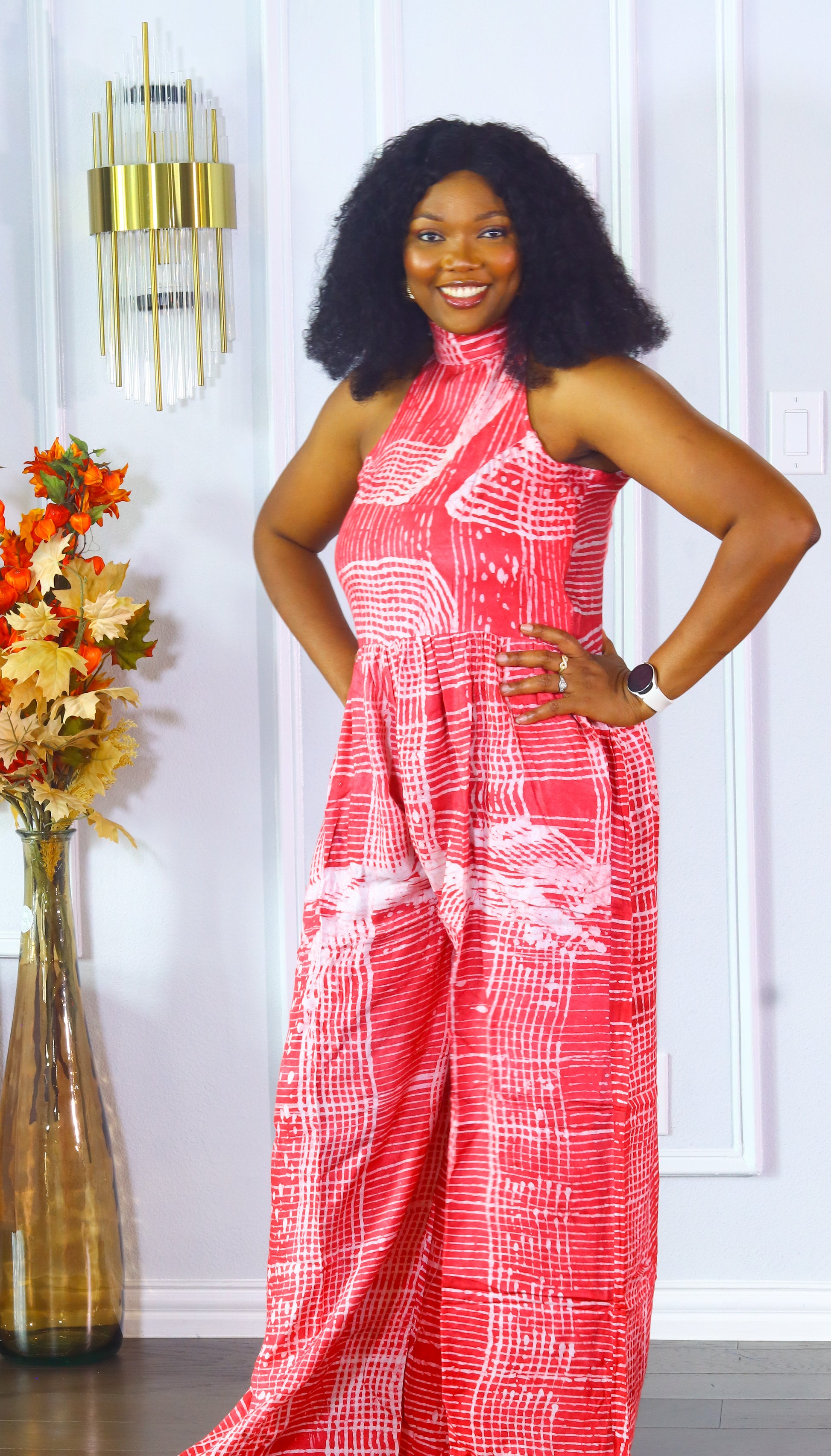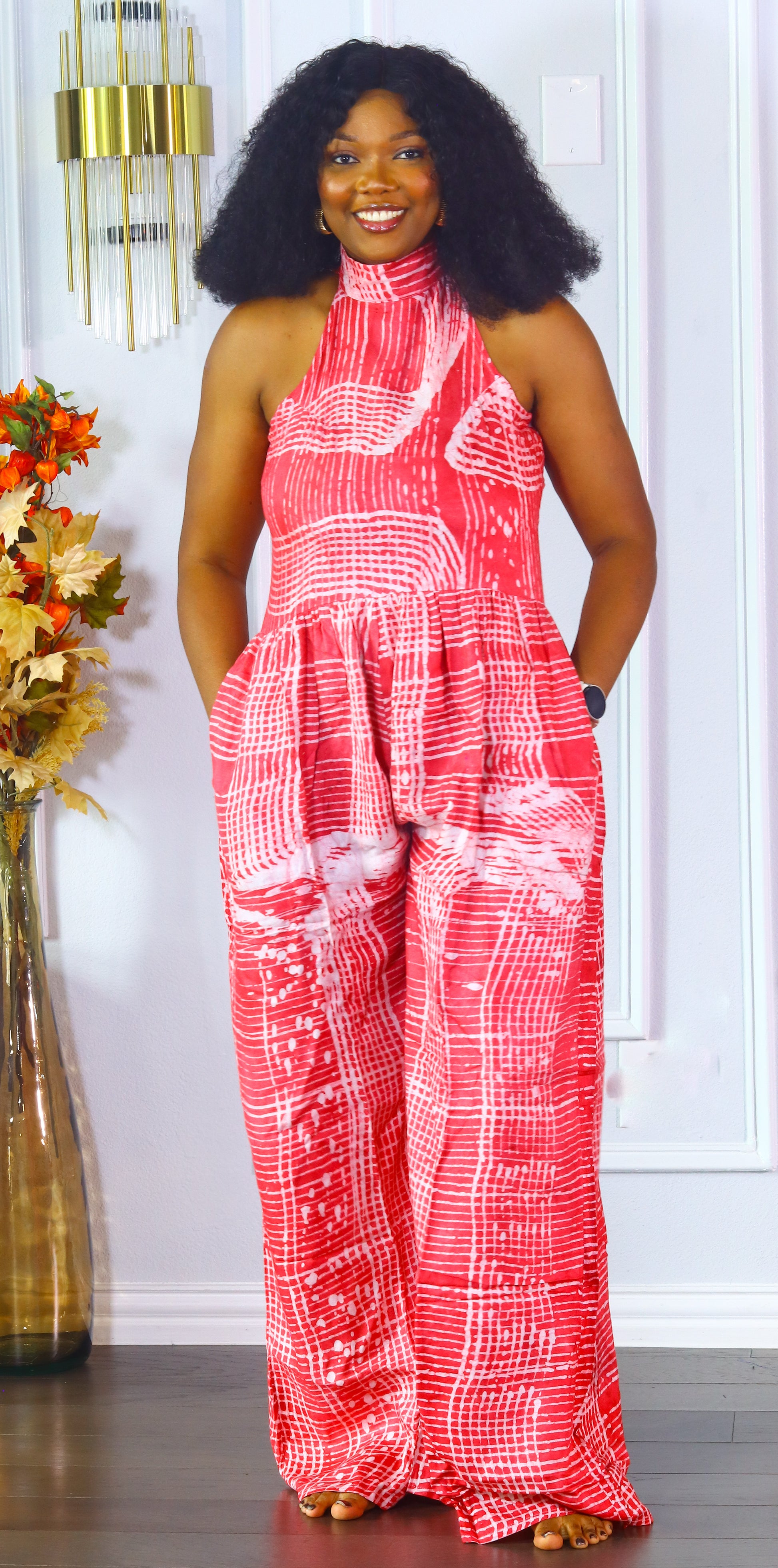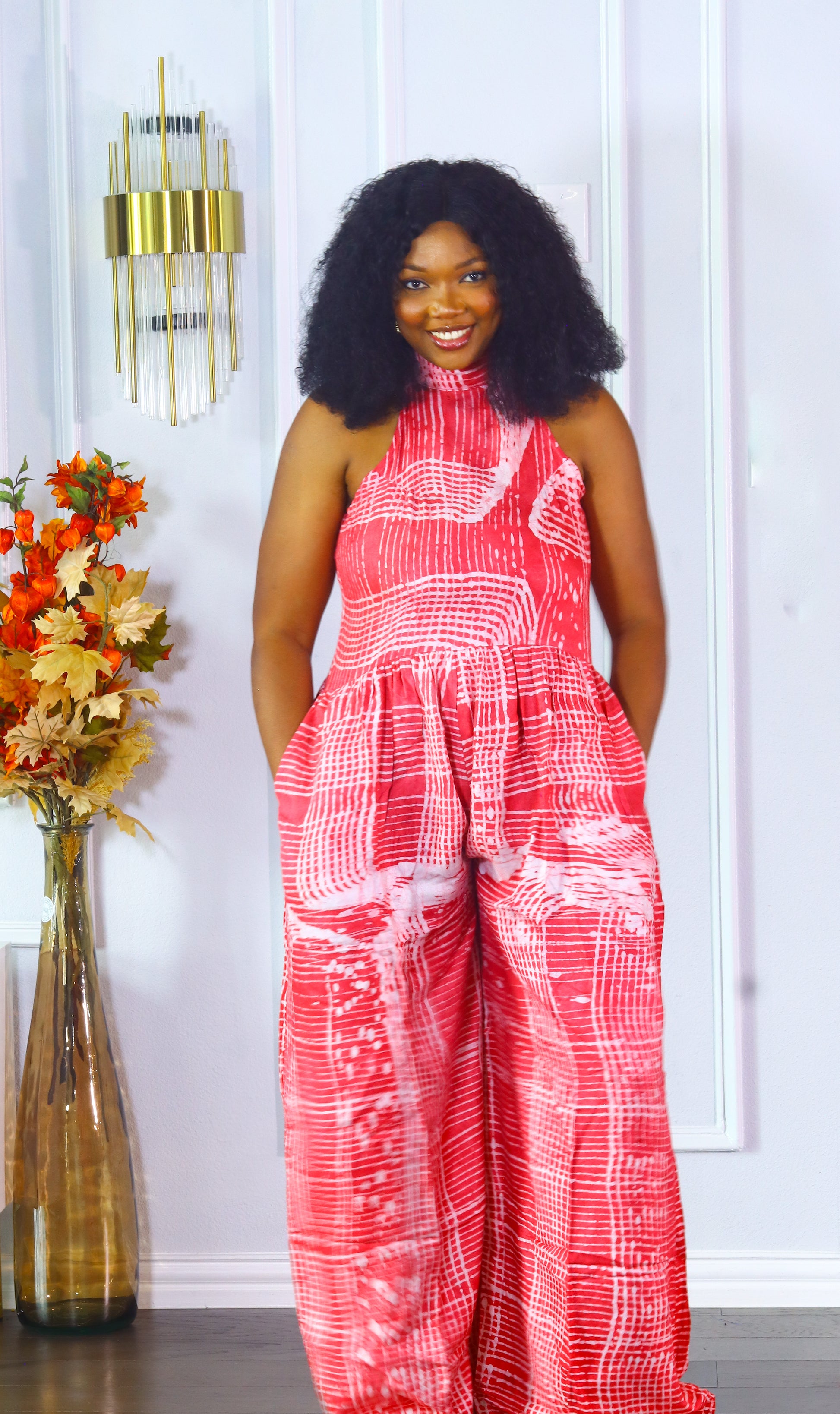 Crafted from lightweight adire crepe, the Adeore adire sleeveless women’s jumpsuit elegantly blends traditional textile artistry with modern design. Its breathable fabric ensures exceptional comfort, making it a unique and refined choice for effortless sophistication.