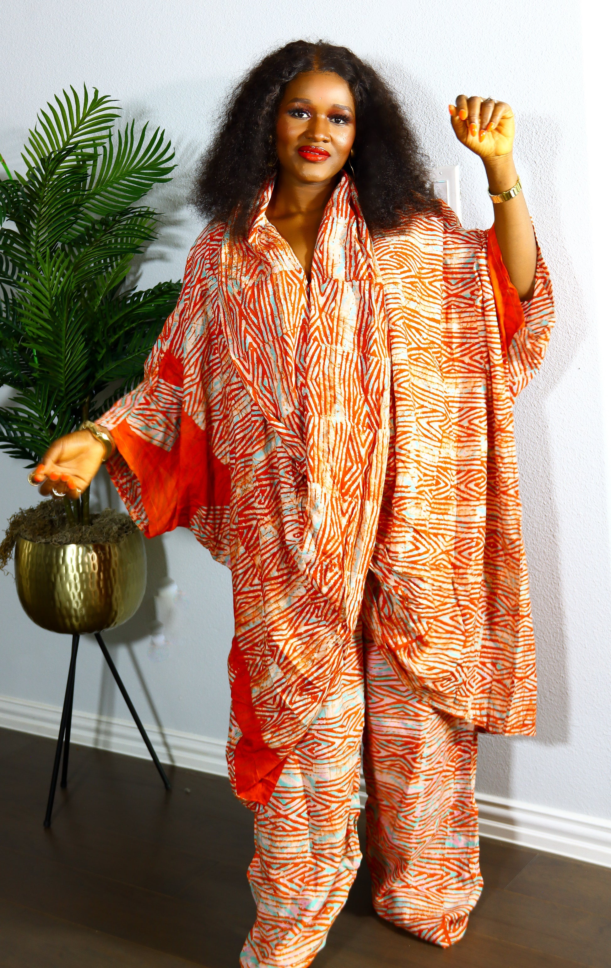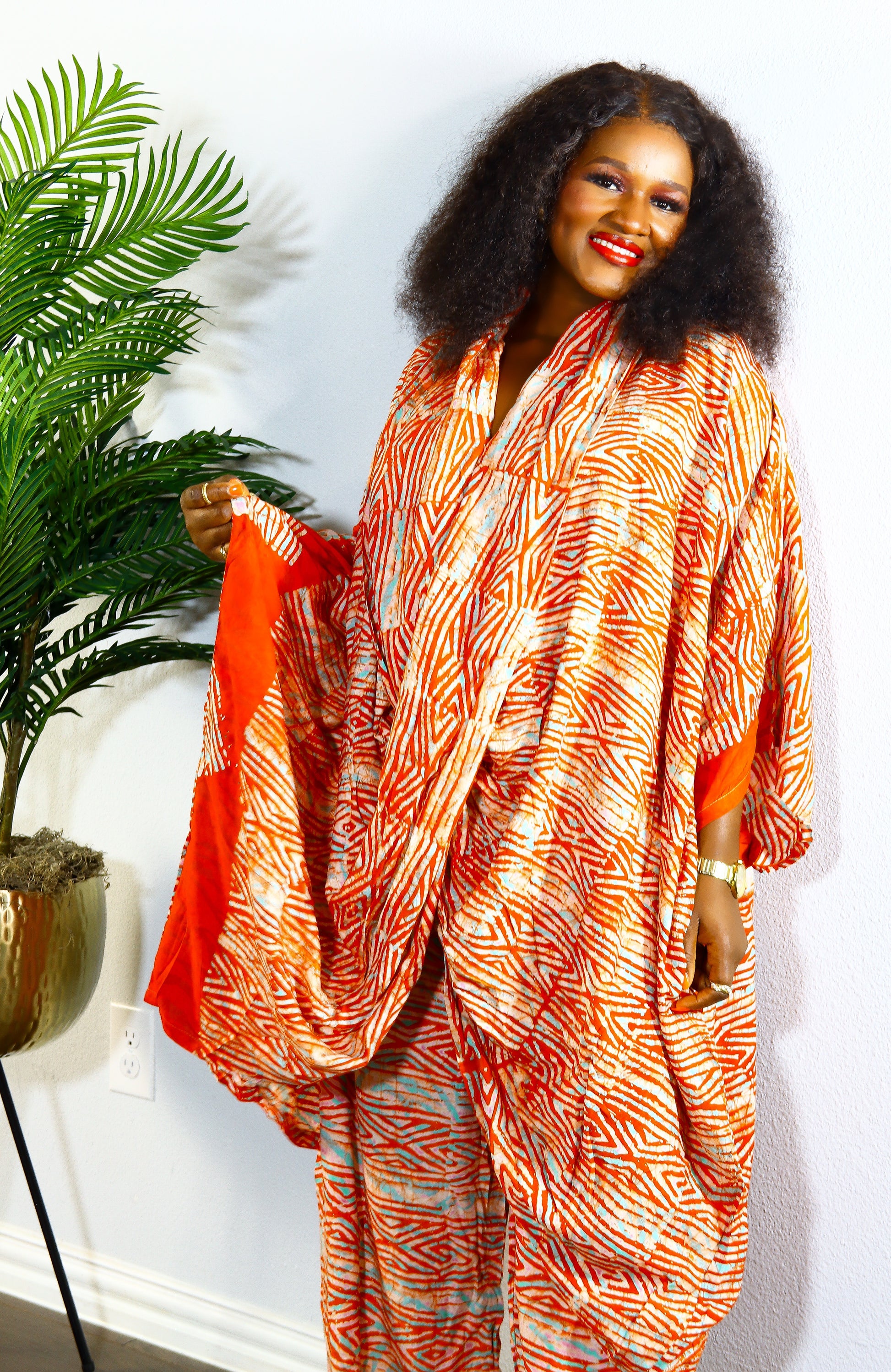 Adetola Adire African print Aso oke Kimono Duster with pockets (Brown)