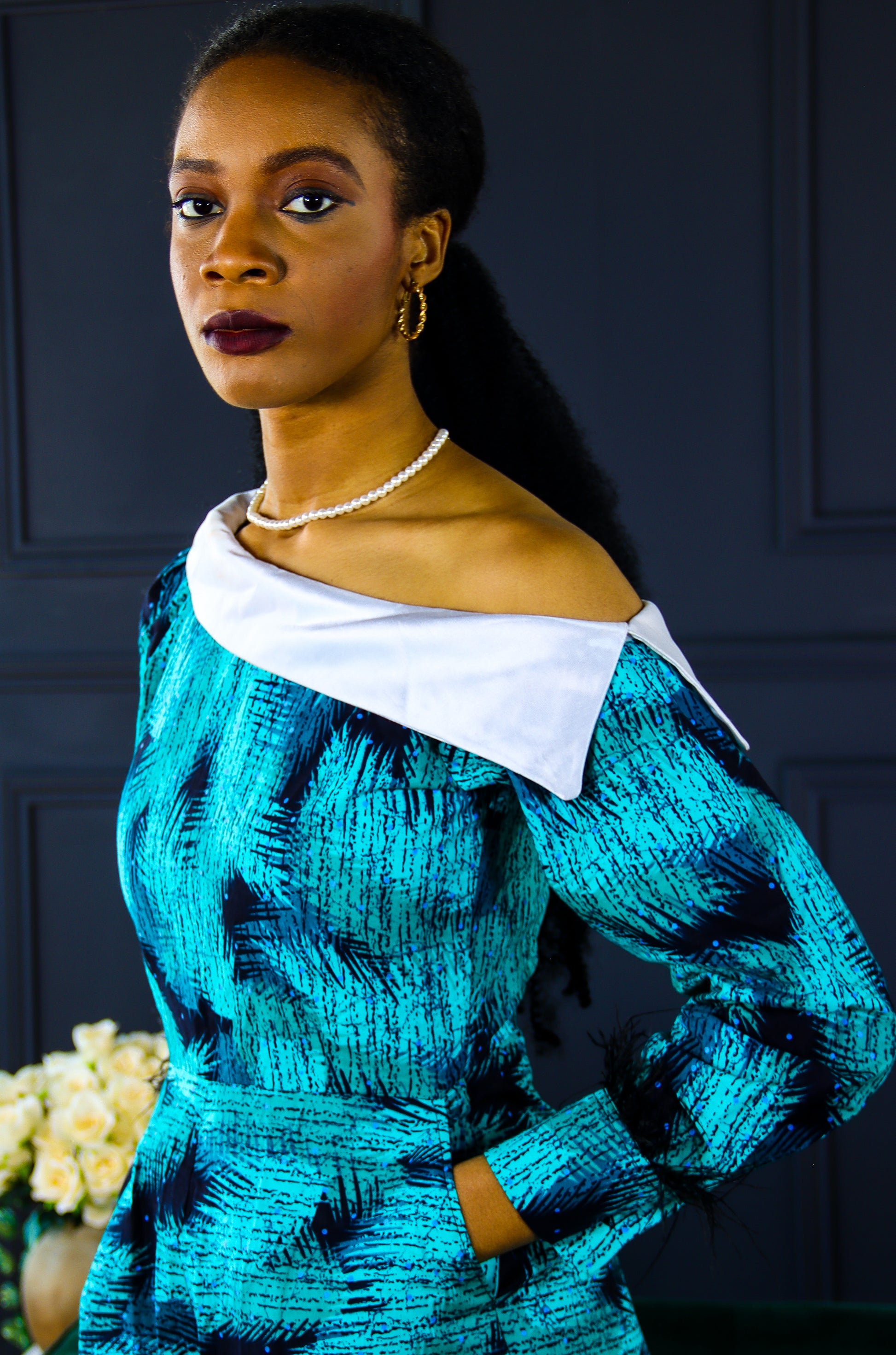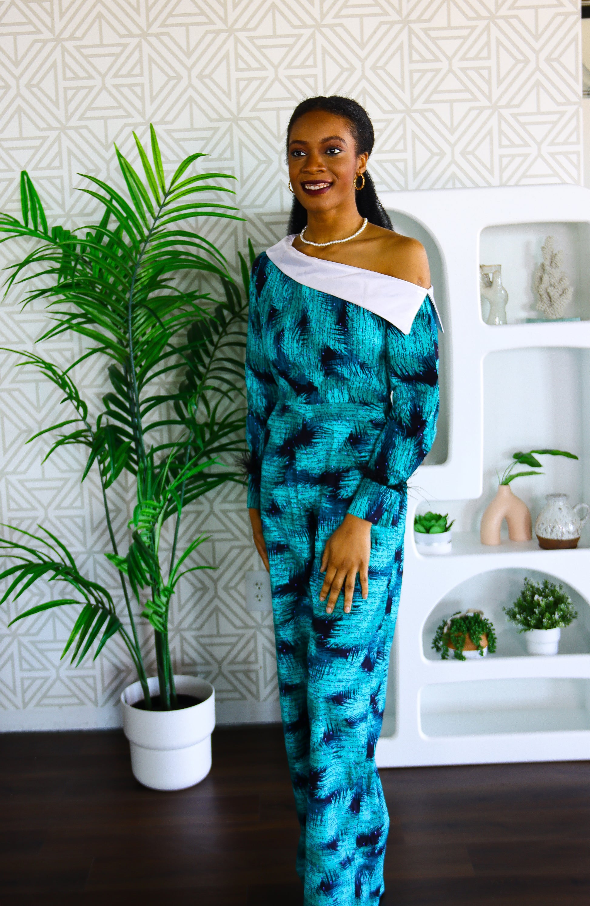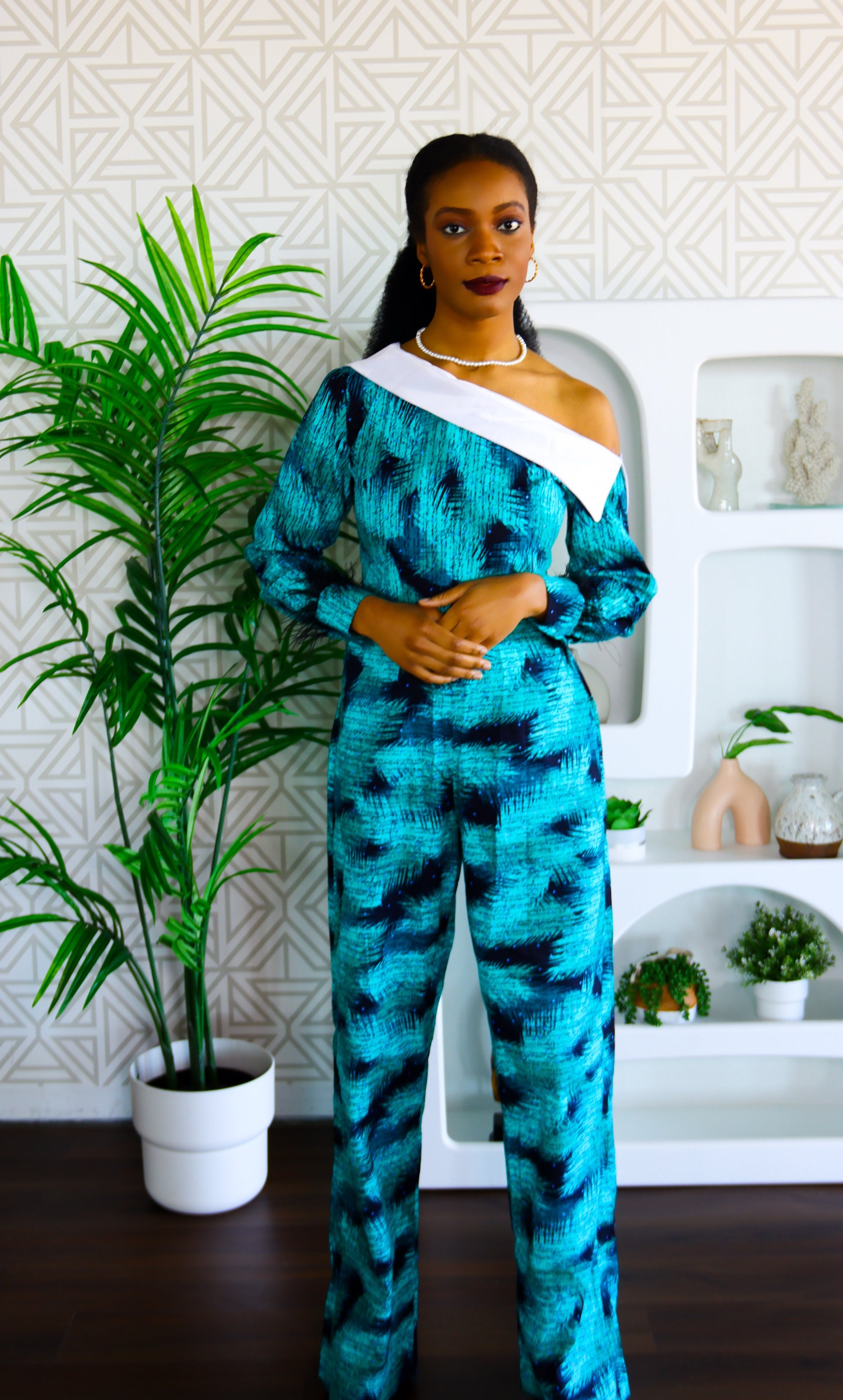 Bukola Ankara asymmetrical white collar neckline Jumpsuit