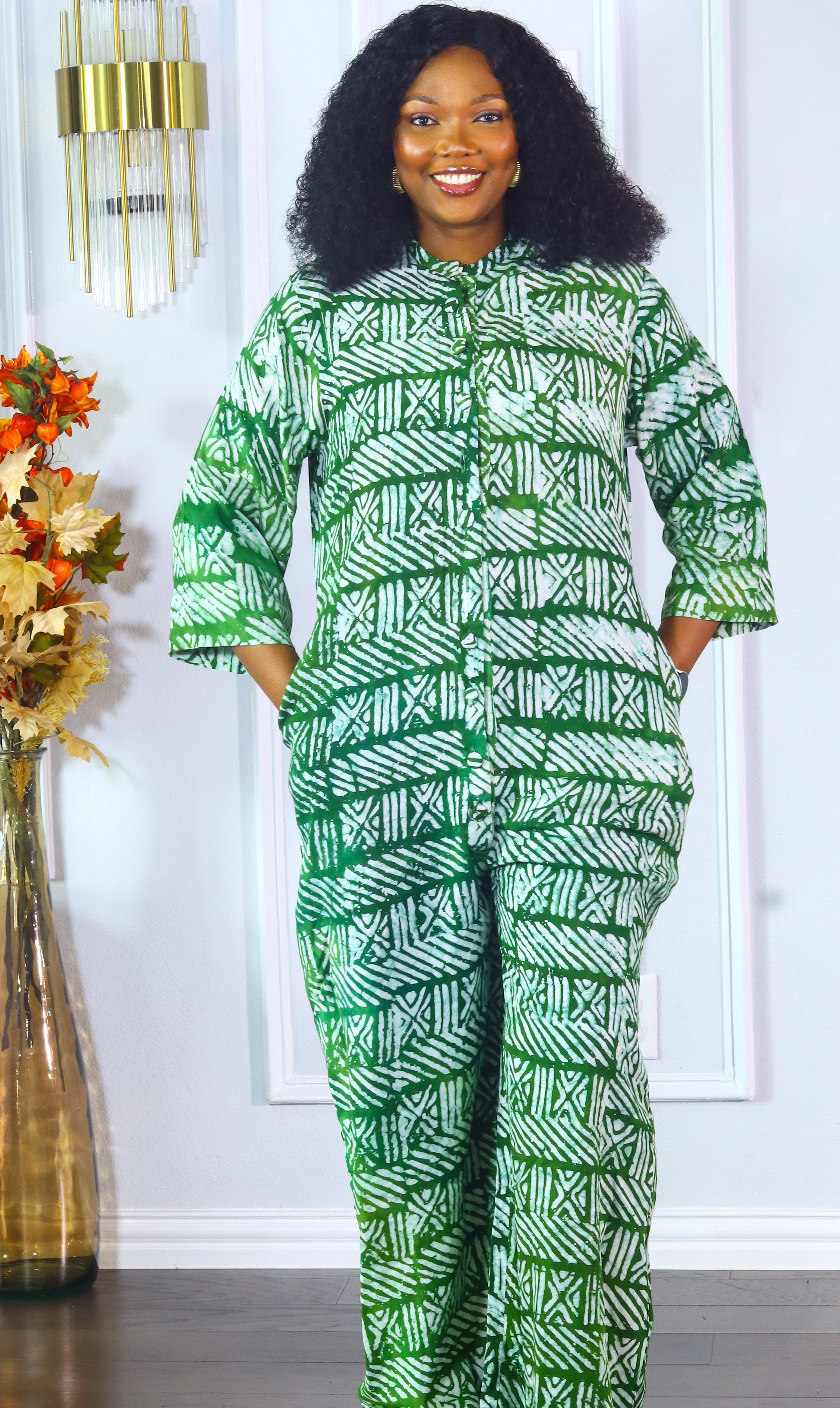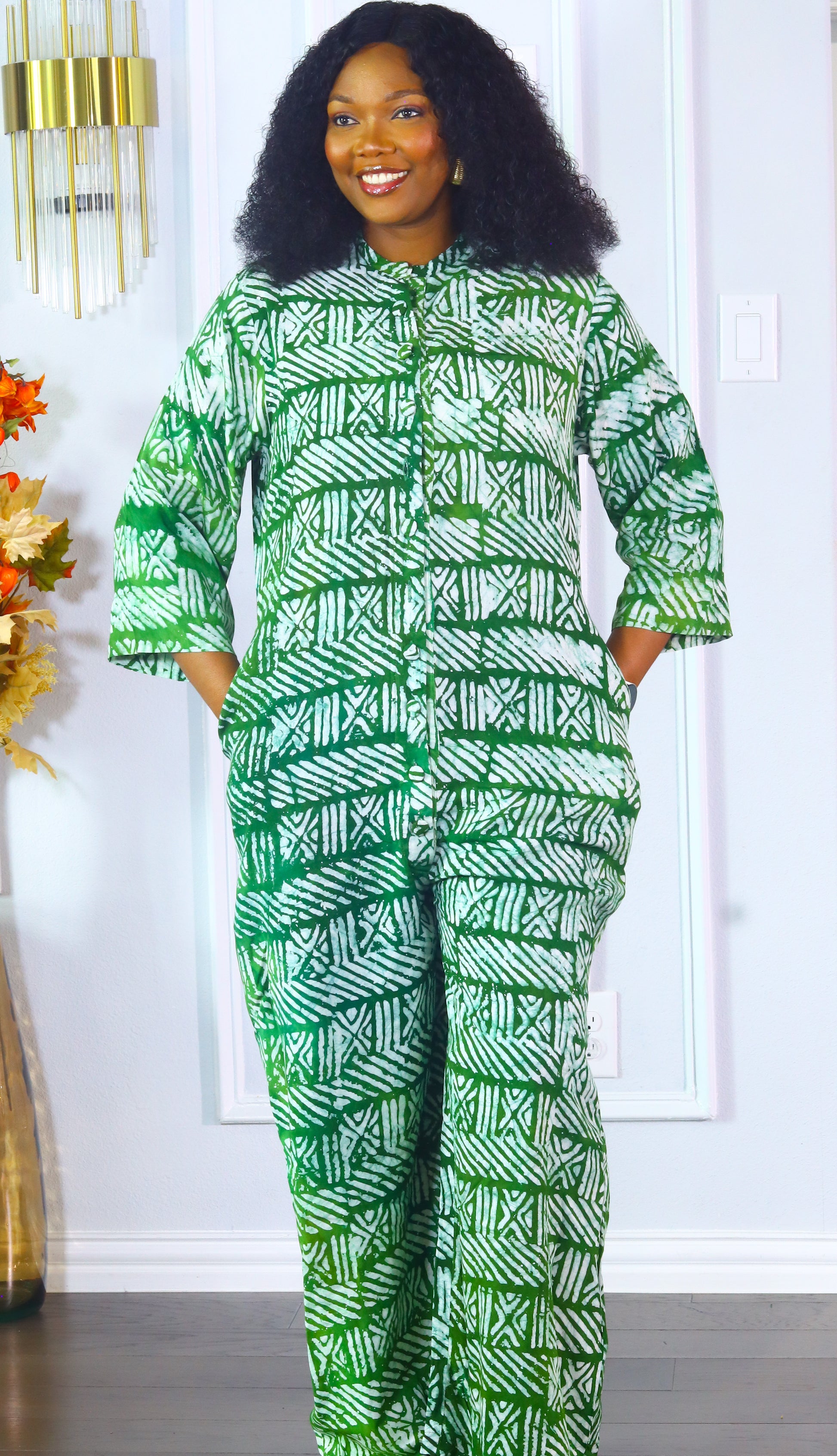 Crafted from lightweight adire crepe, the Adeore adire sleeveless women’s jumpsuit elegantly blends traditional textile artistry with modern design. Its breathable fabric ensures exceptional comfort, making it a unique and refined choice for effortless sophistication.