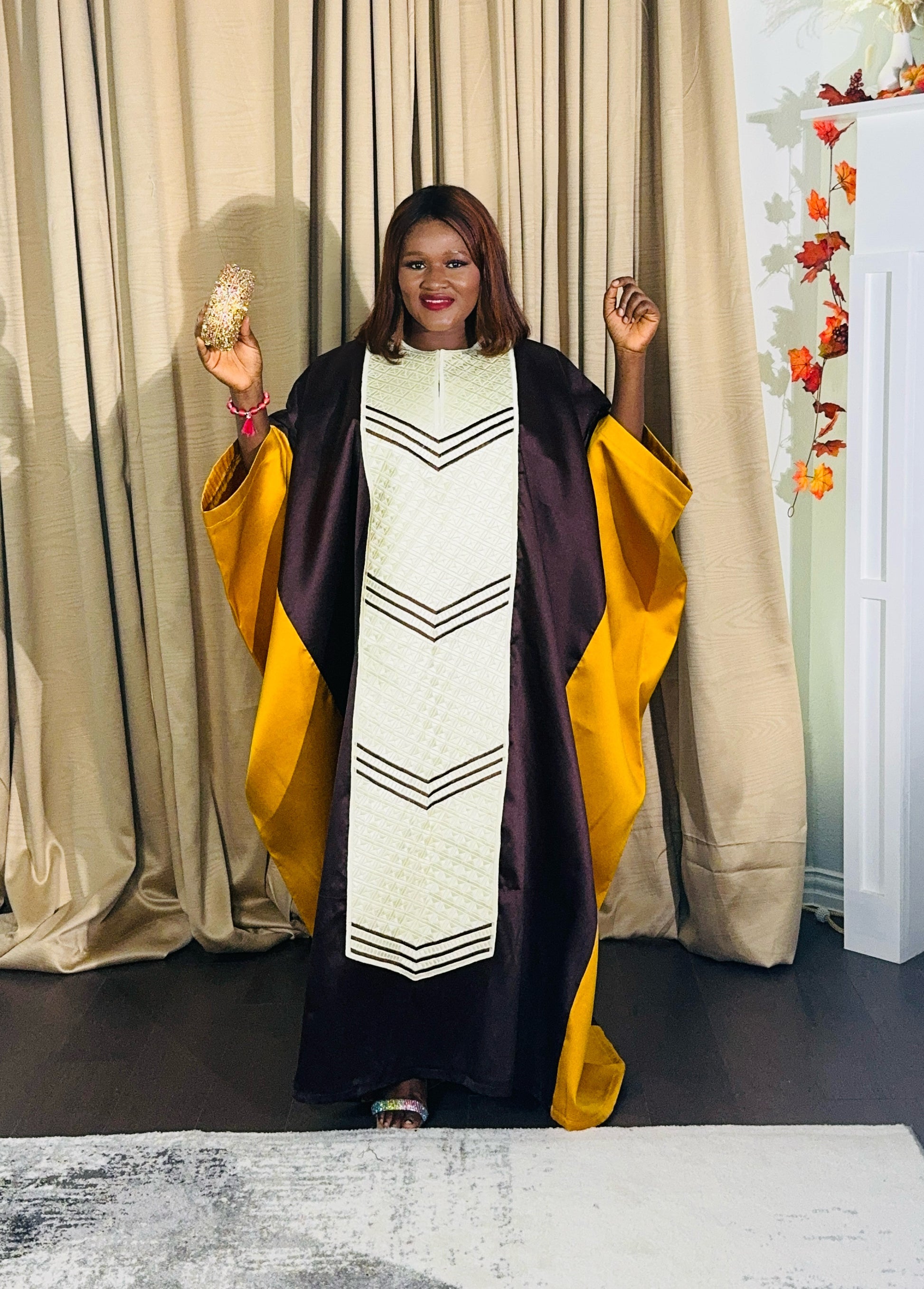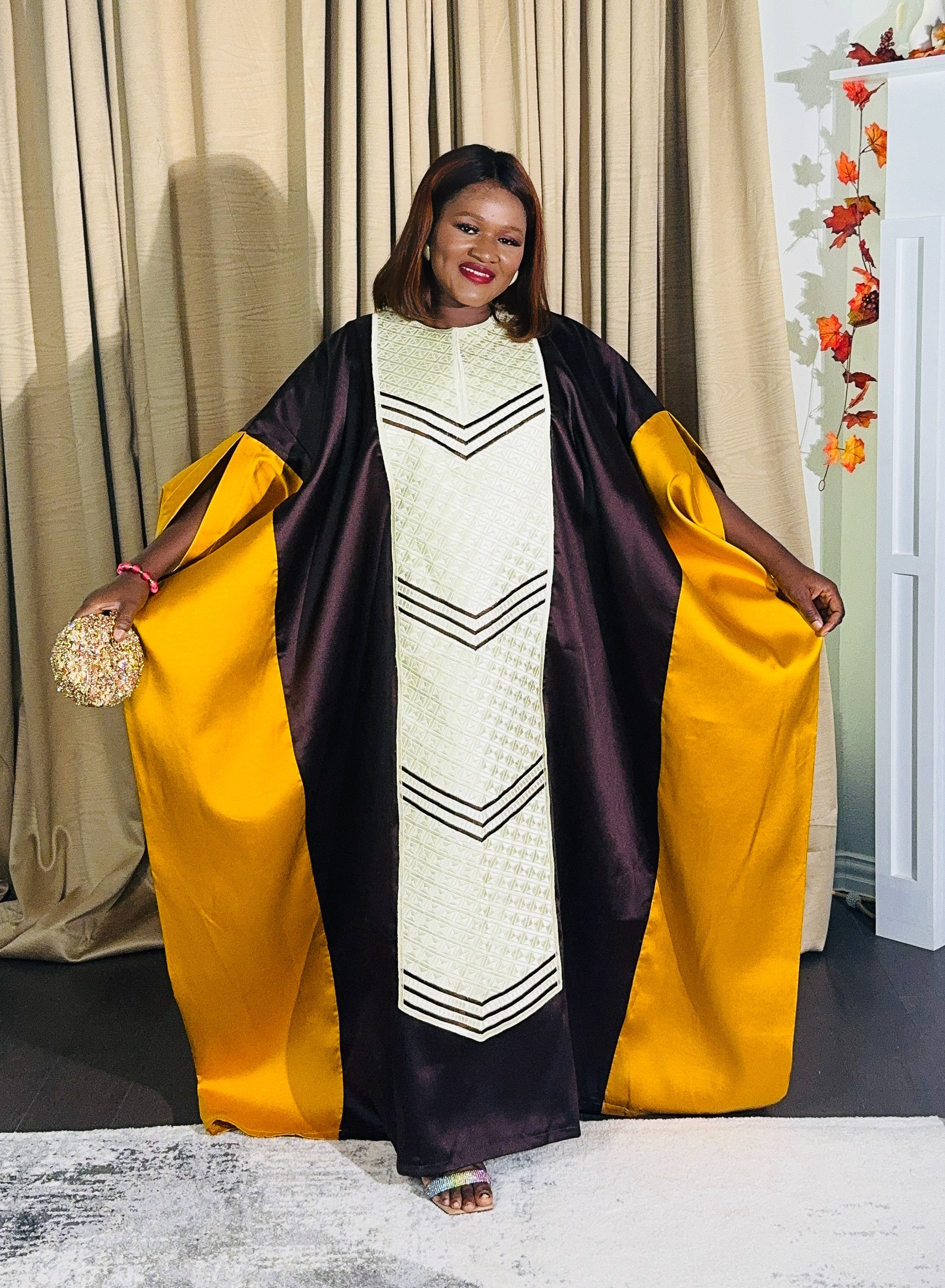 Mide Embroidered Rich aunty luxury Bubu(Brown)