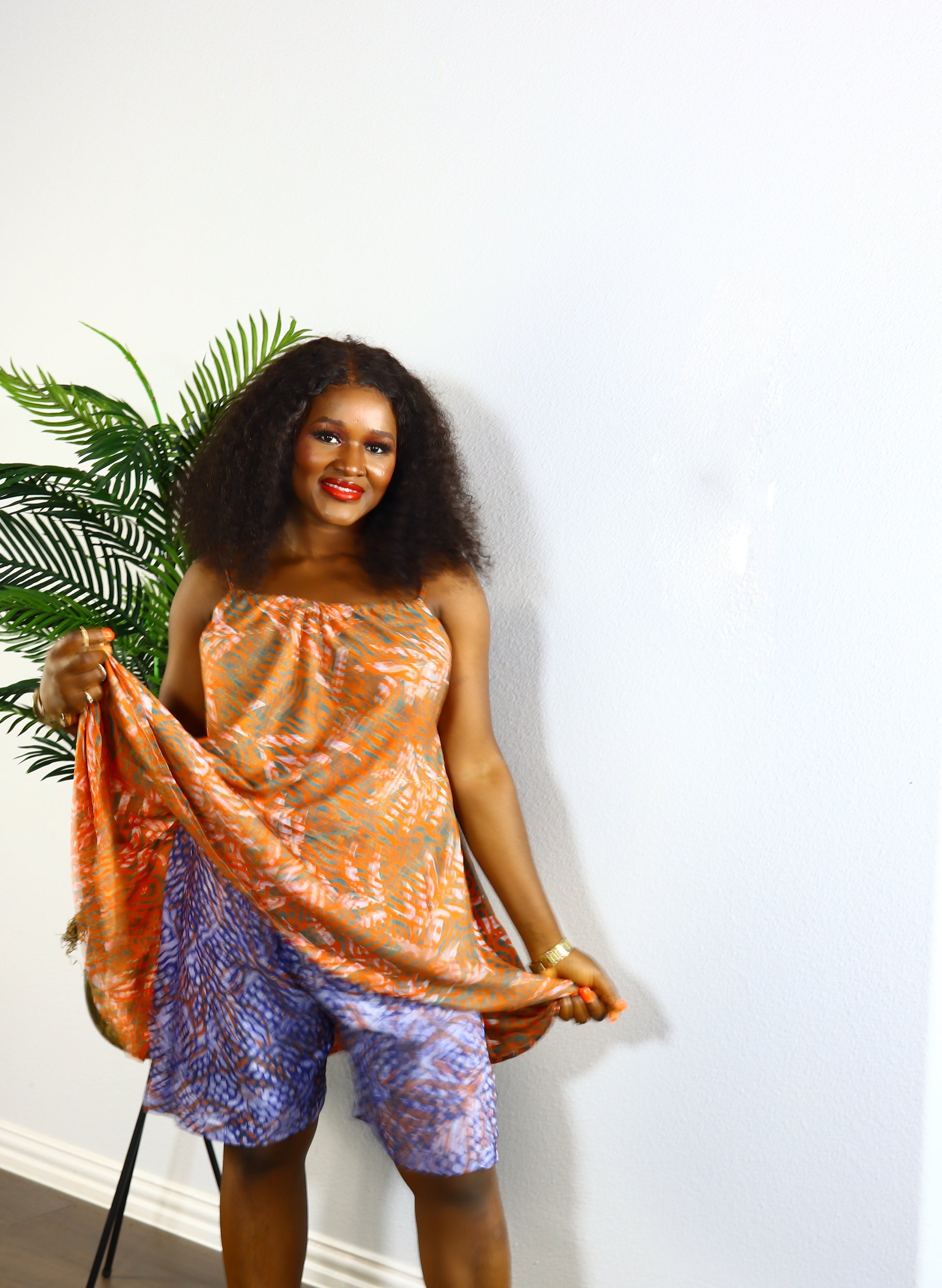 Indulge in elegant summer styling with our Farida sleeveless adire crepe two piece set. Perfect for quick outings, this versatile set can be worn as a set or separately for a variety of looks. Be effortlessly chic this season with this must-have addition to your wardrobe.