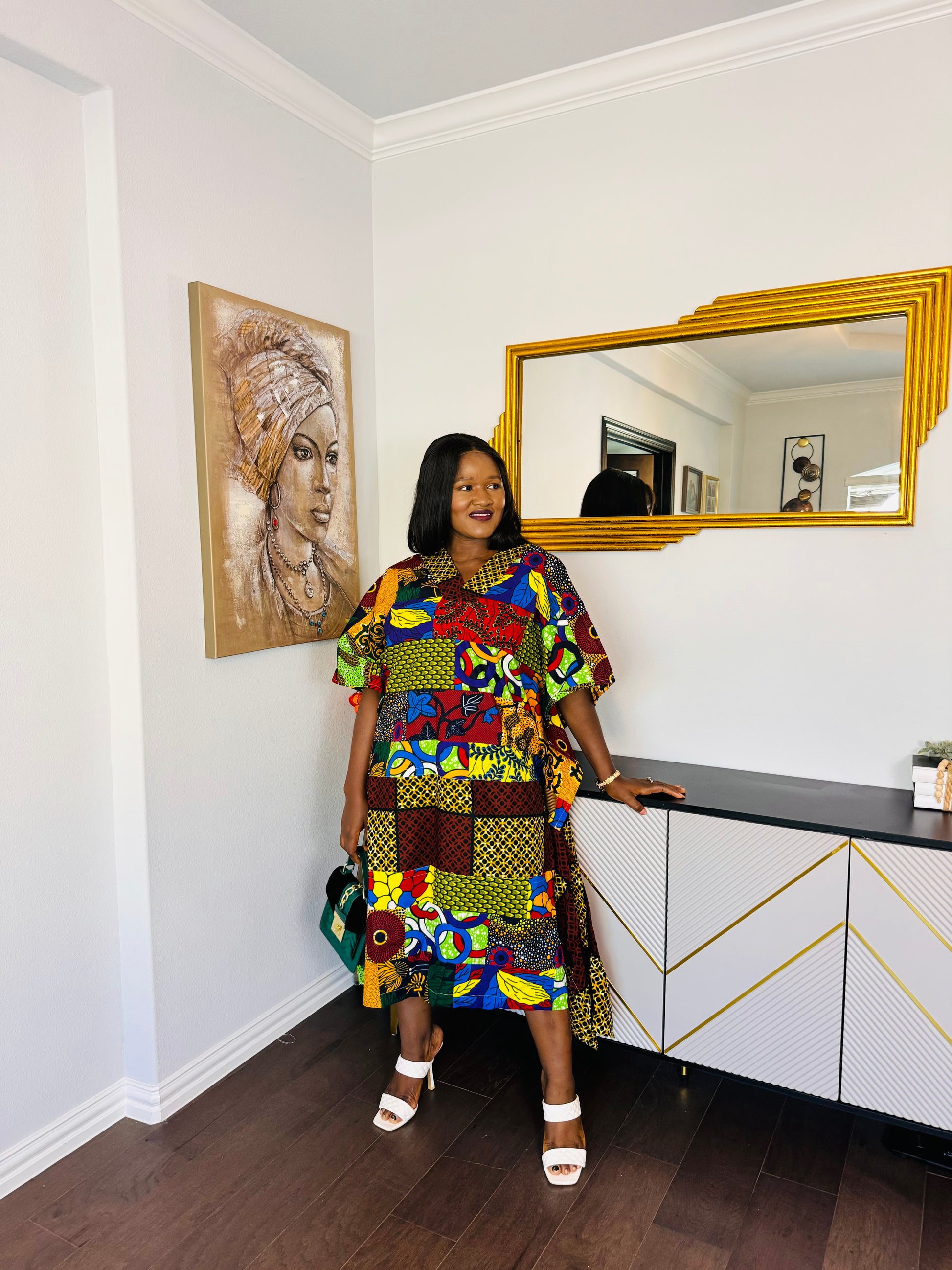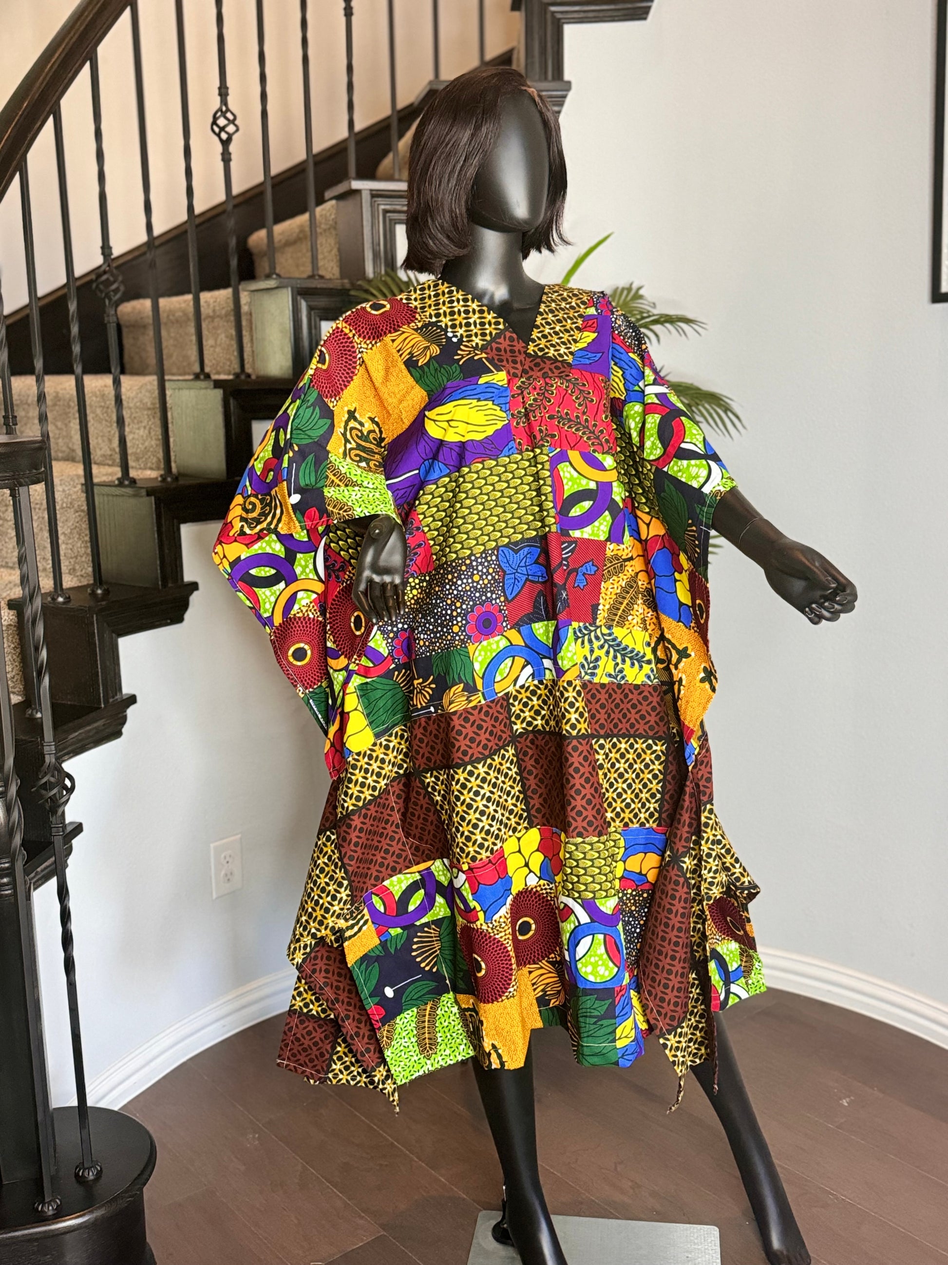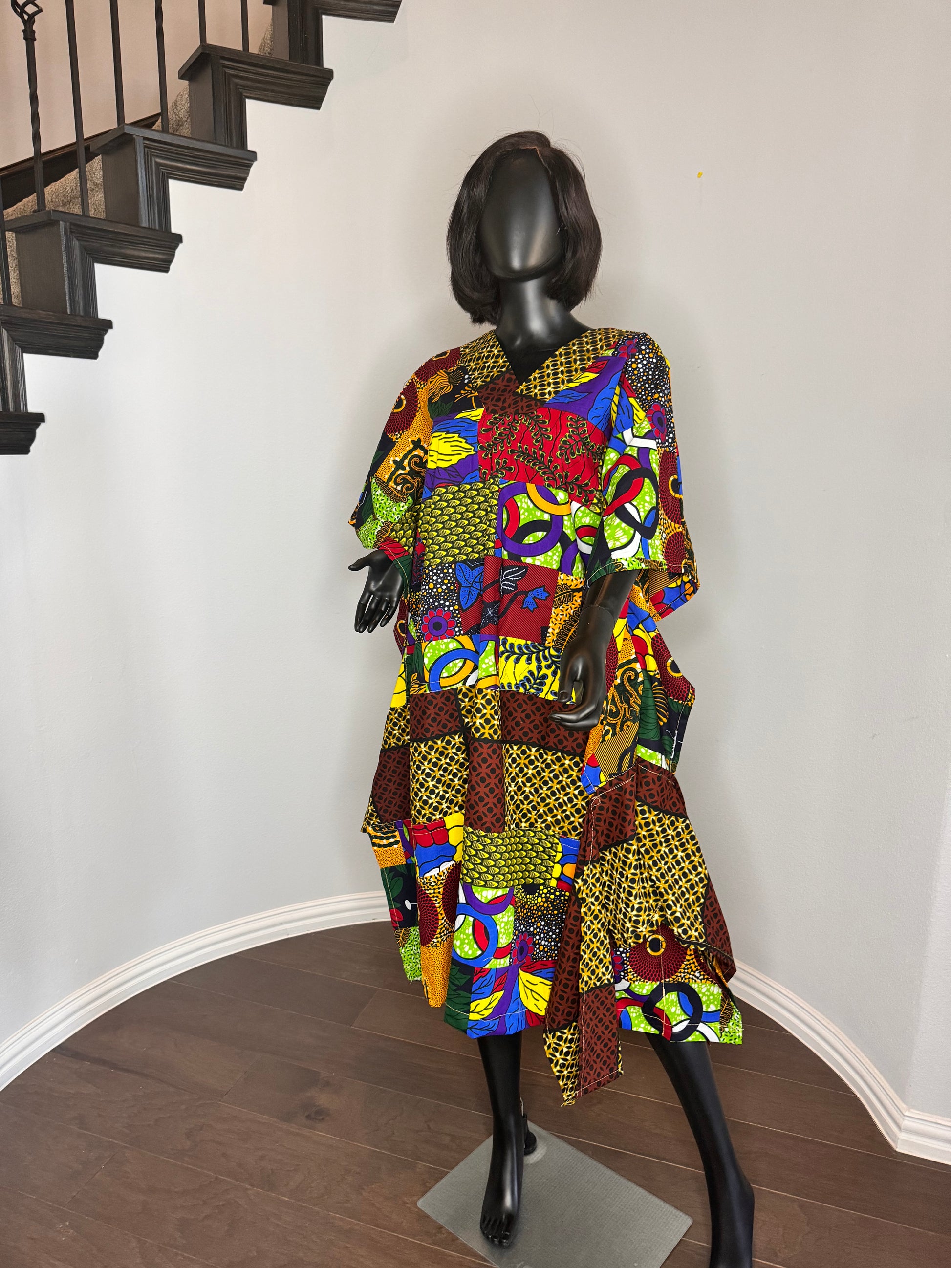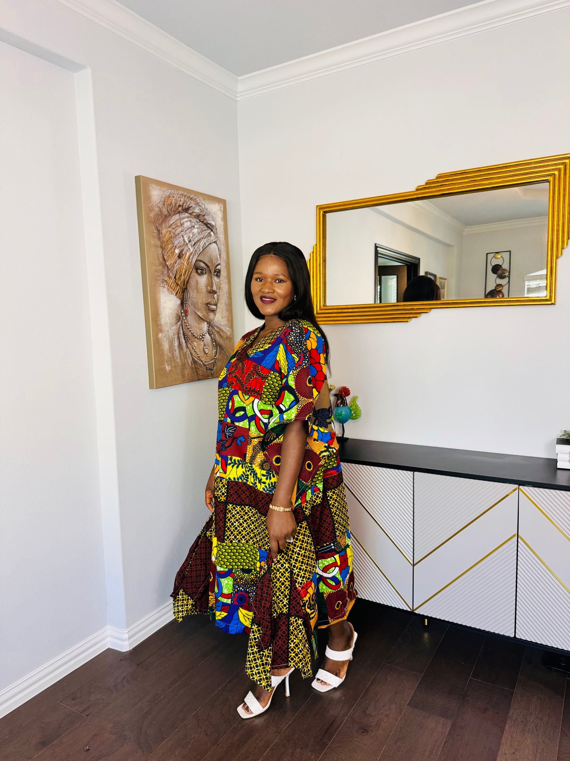Dazzle and shine in this two African print fabric combo Caftan. We call it the Caftan of many colors and named after Joseph from the Bible.