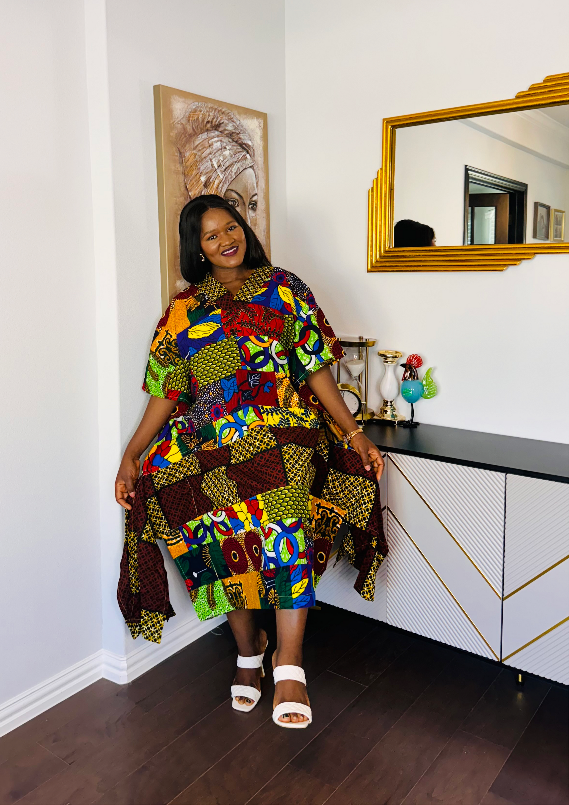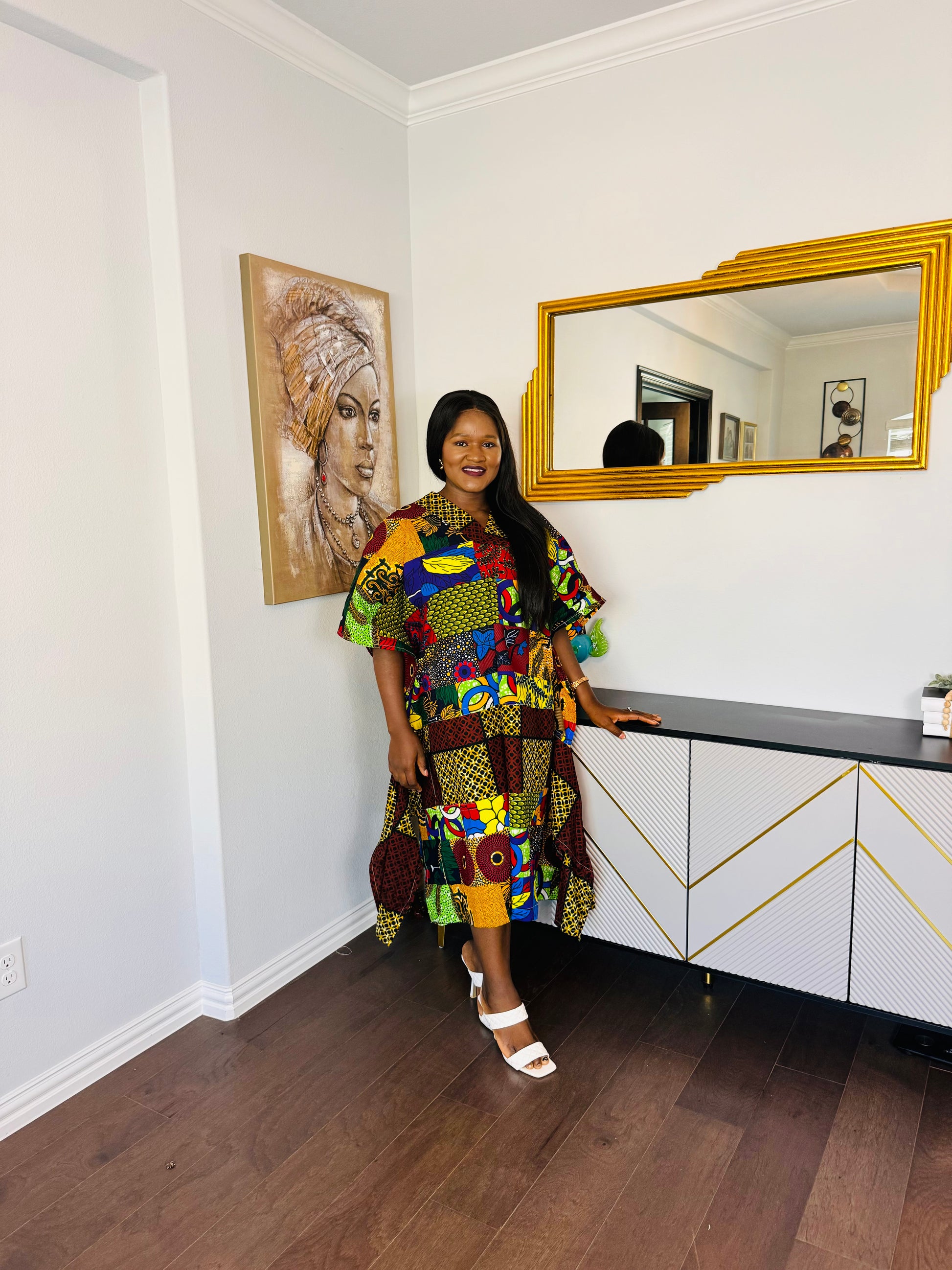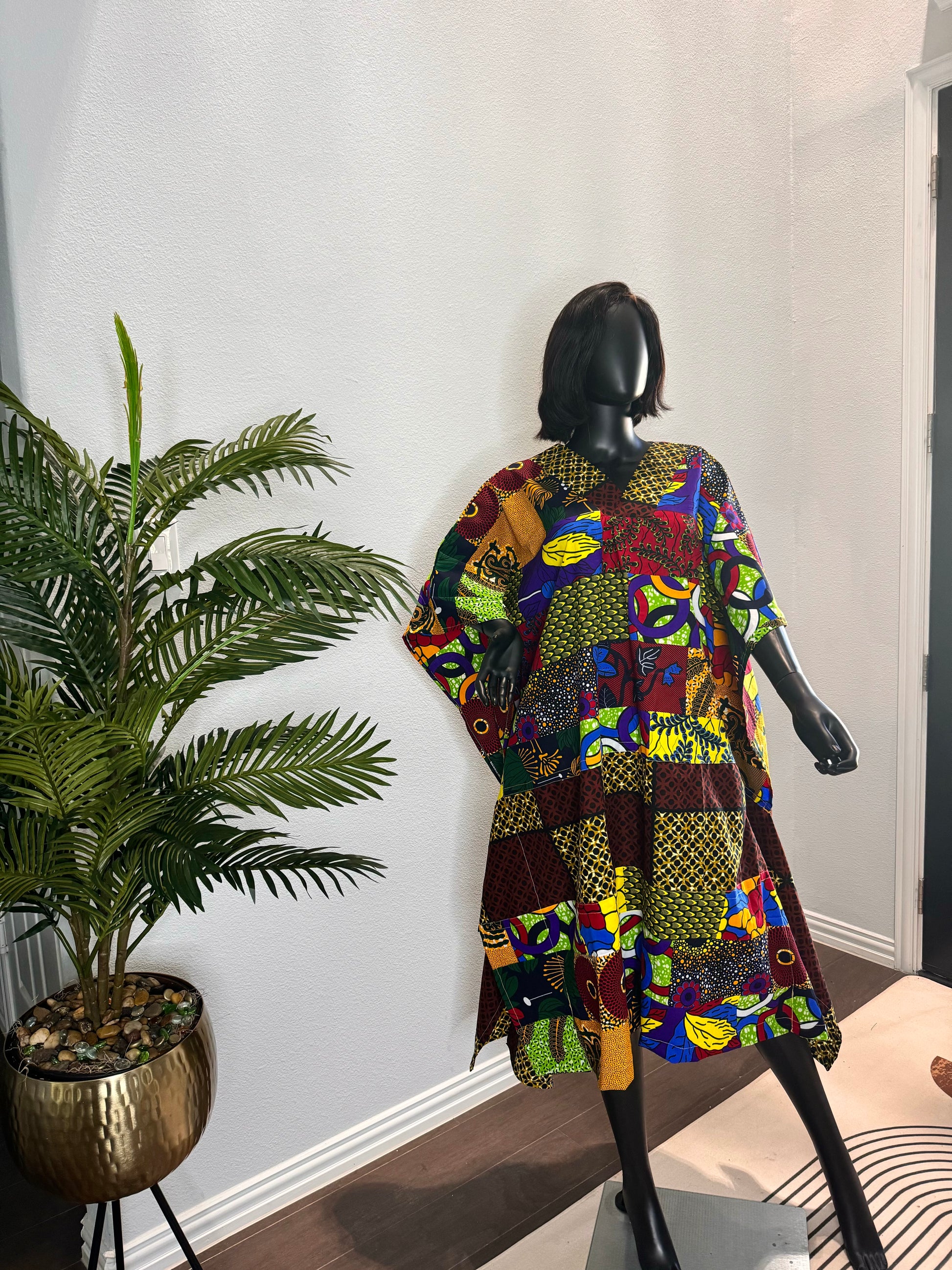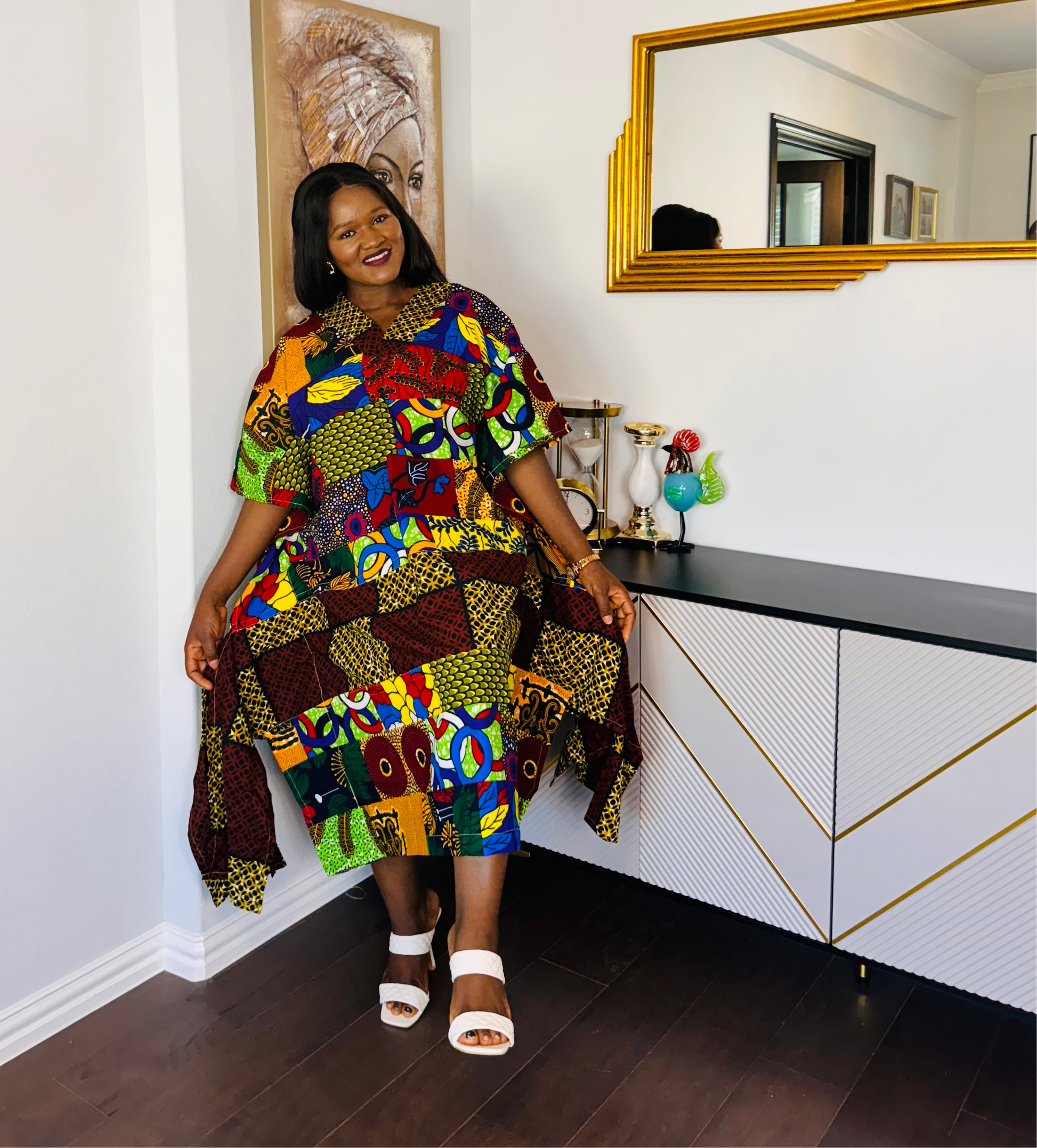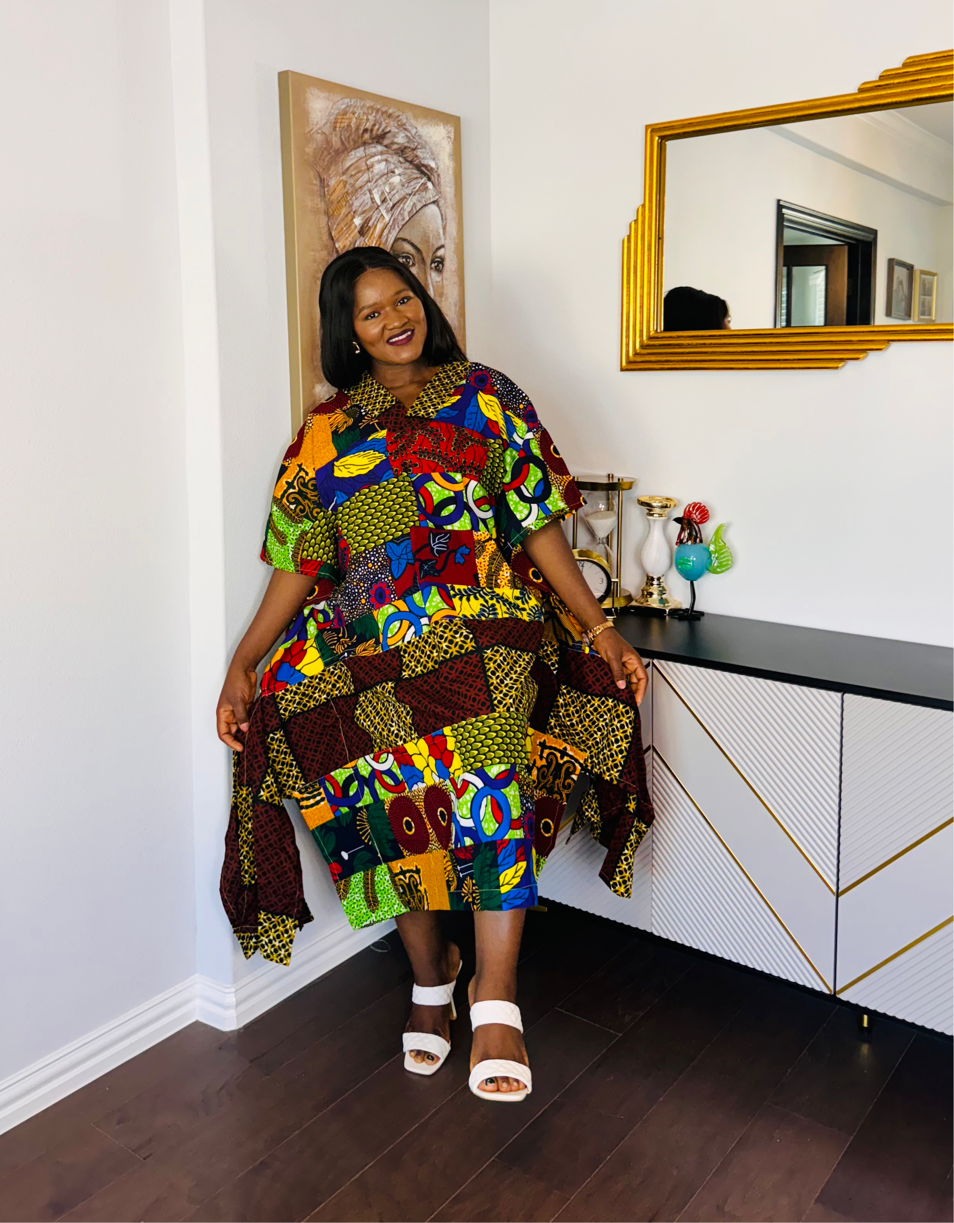 Dazzle and shine in this two African print fabric combo Caftan. We call it the Caftan of many colors and named after Joseph from the Bible.