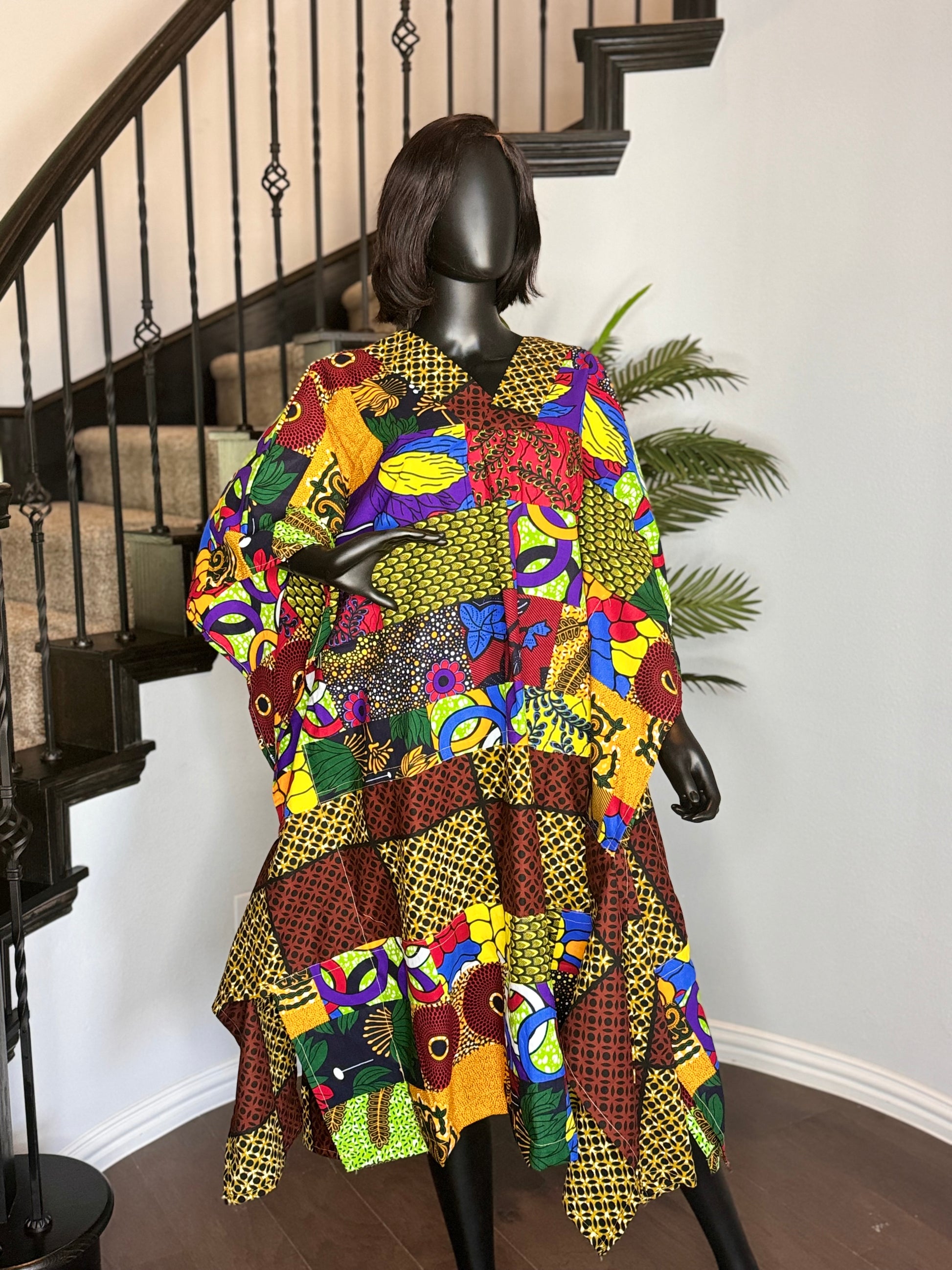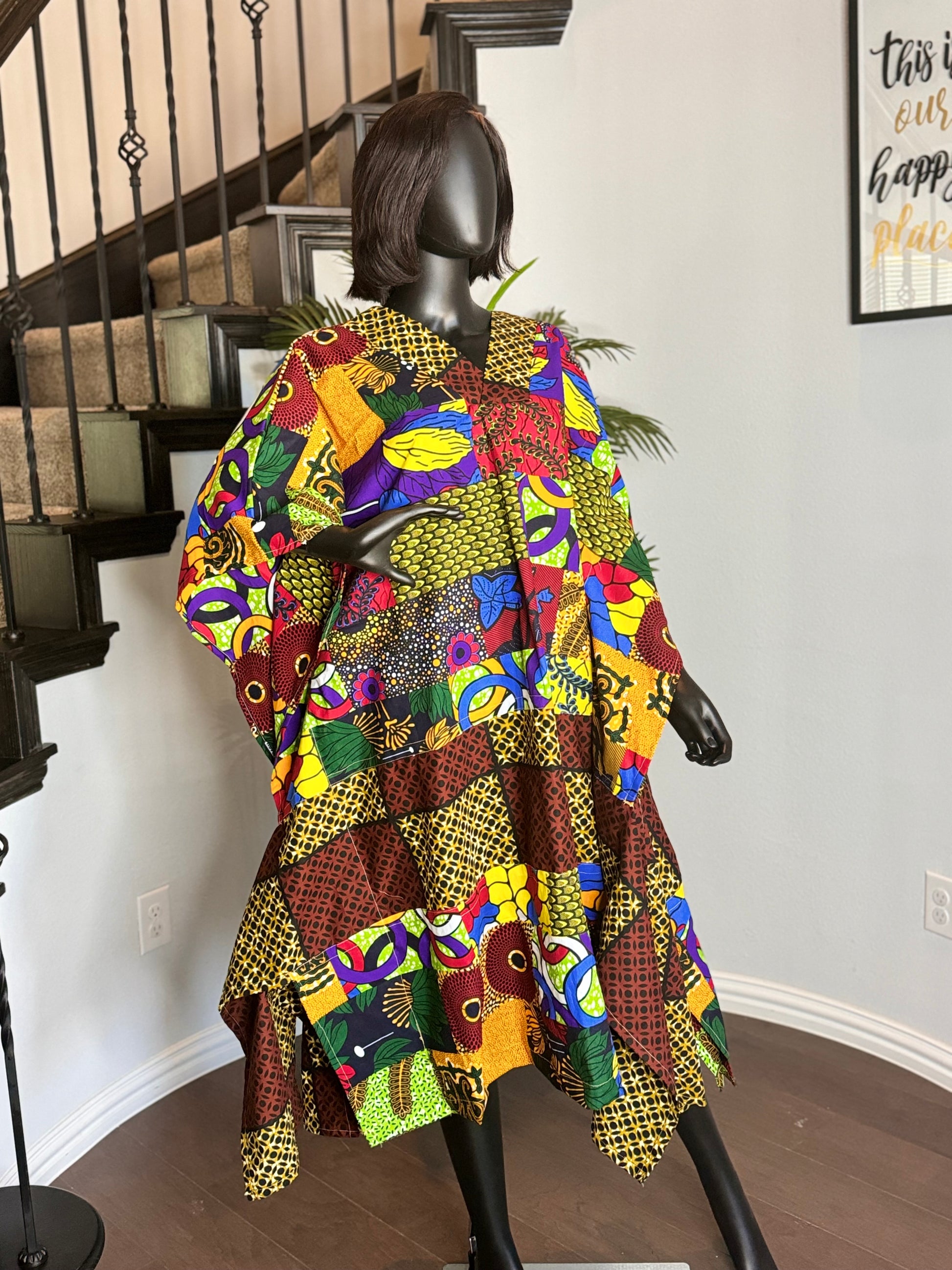 Adetola Adire African print Aso oke Kimono Duster with pockets (Brown)