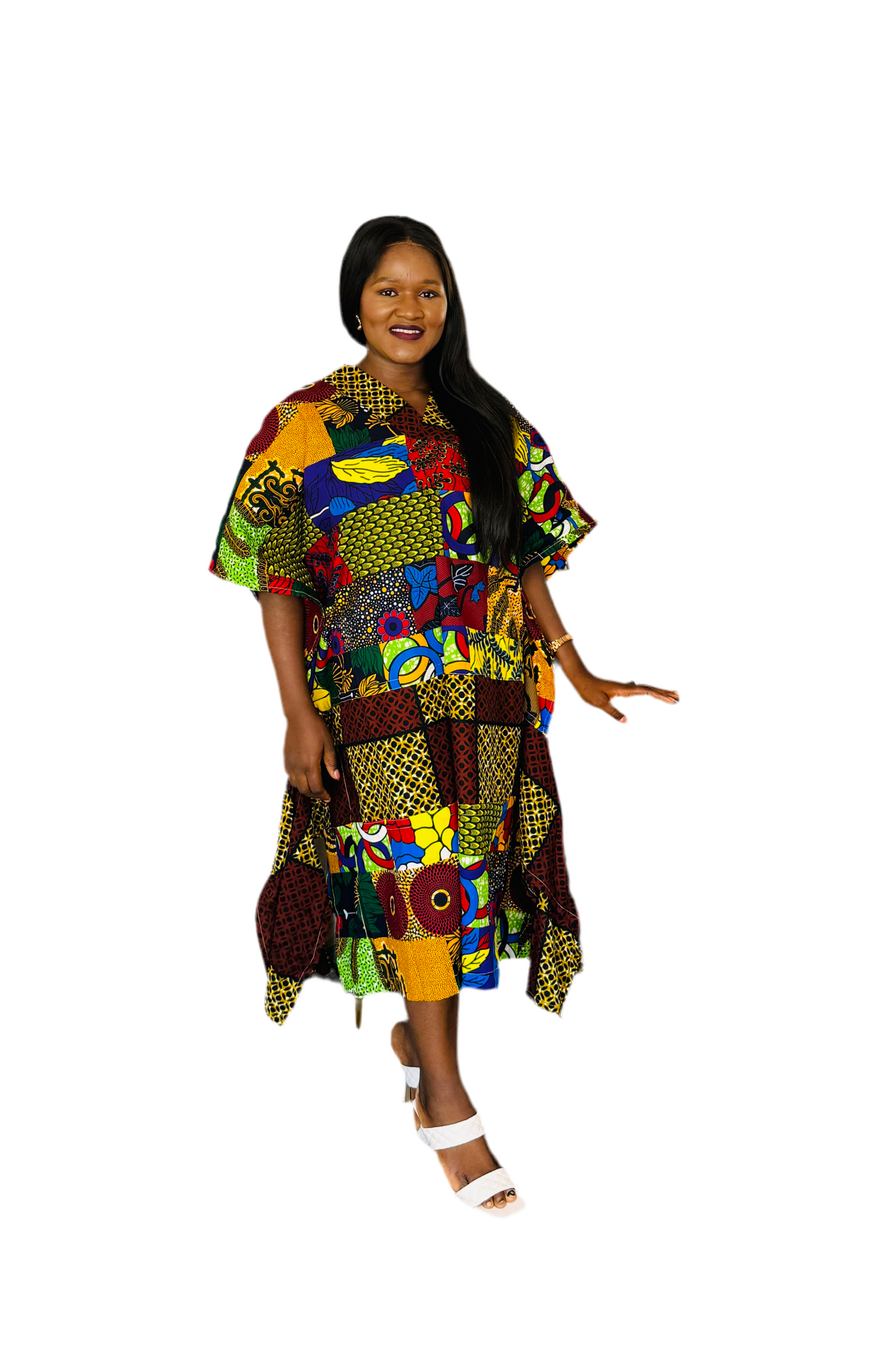 With a simple and easy to wear midi style, this unique Bubu is a one size fits all Caftan. It is a perfect addition to the wardrobe of any stylish woman