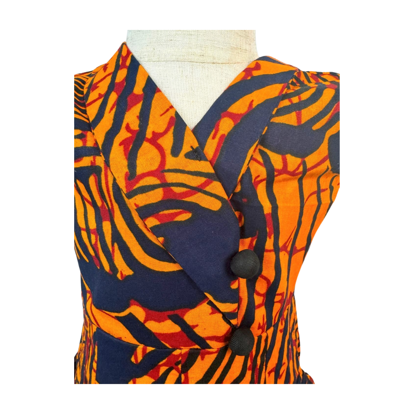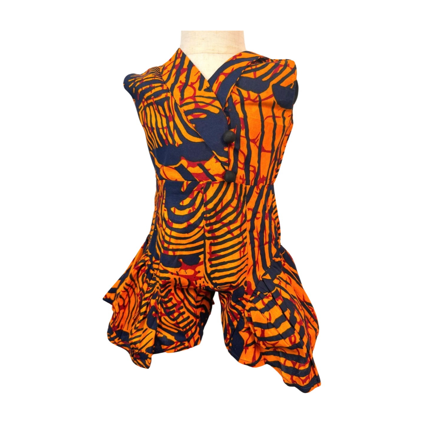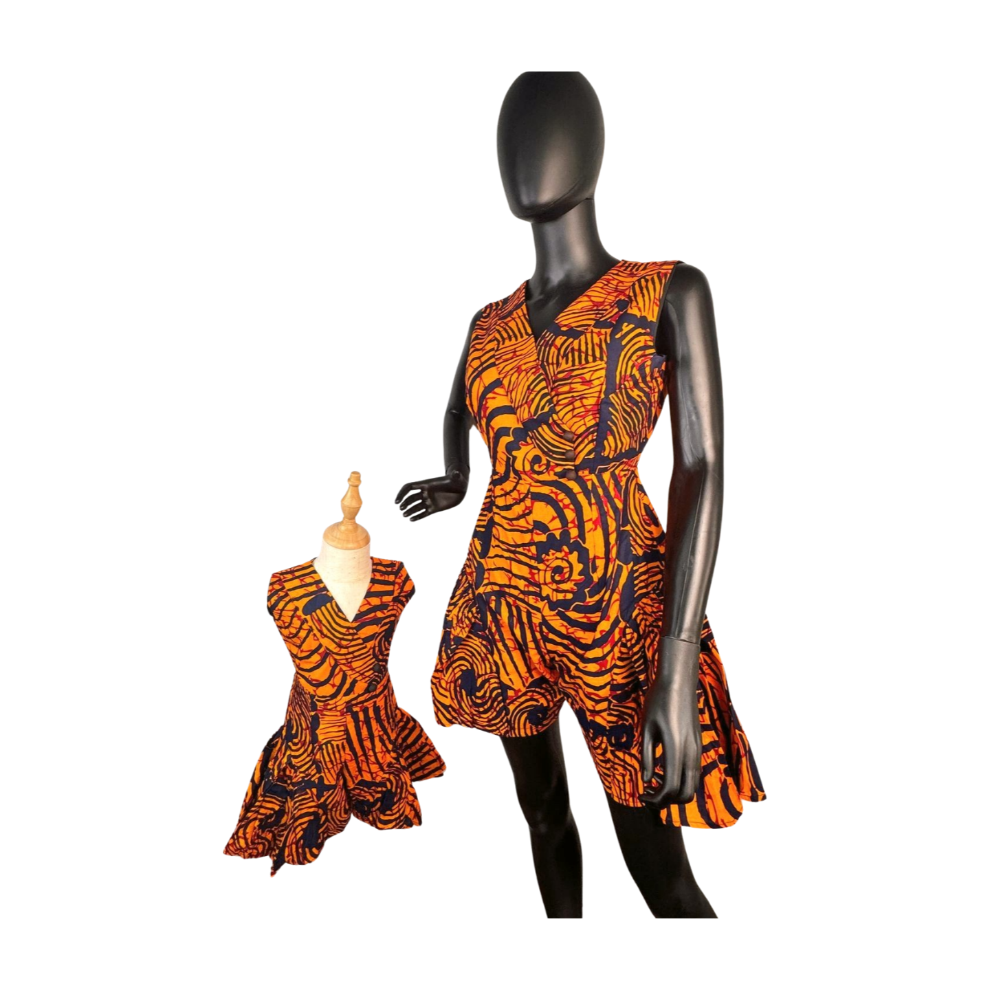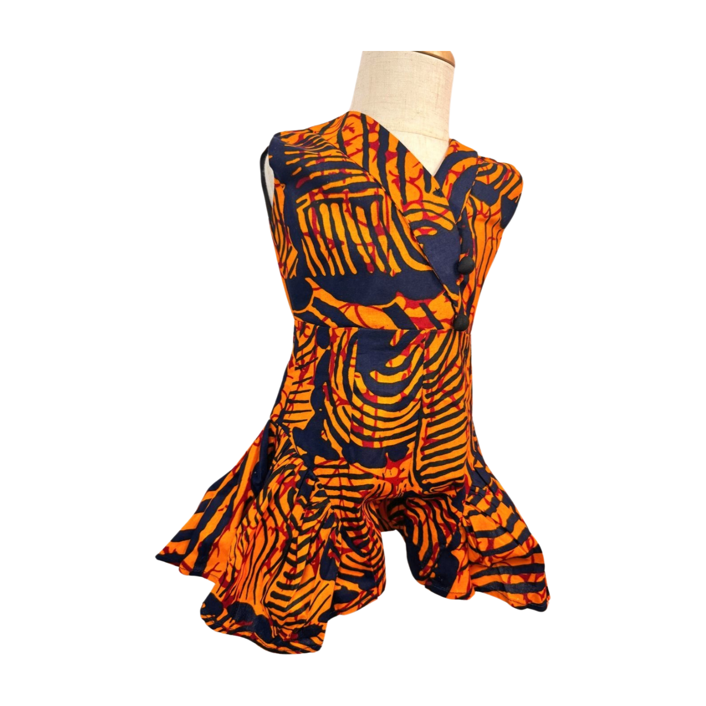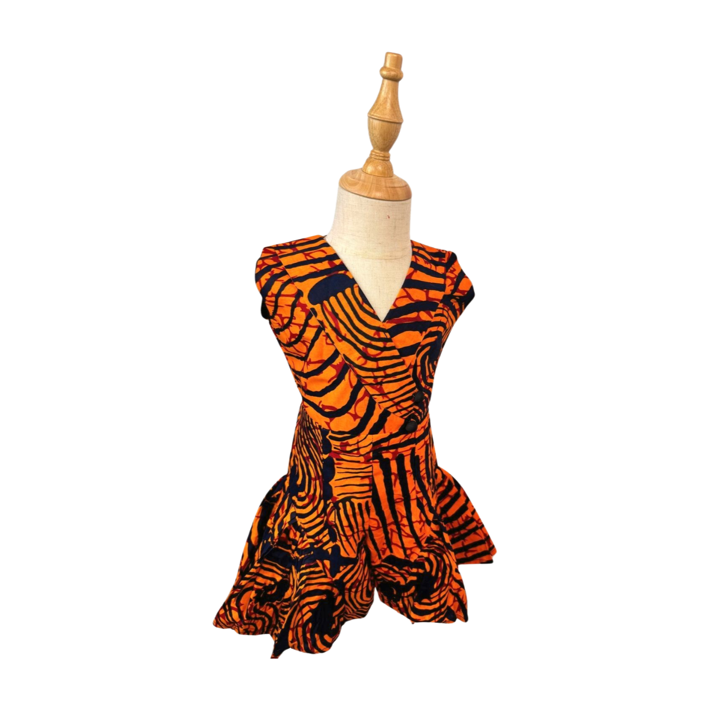 Introducing the Oluyemi African print playsuit for your little princess! This dress combines style and convenience with its pleated flare design, partial lining, and zipper closure. Perfect for special occasions or everyday wear. Get yours today and make her shine!