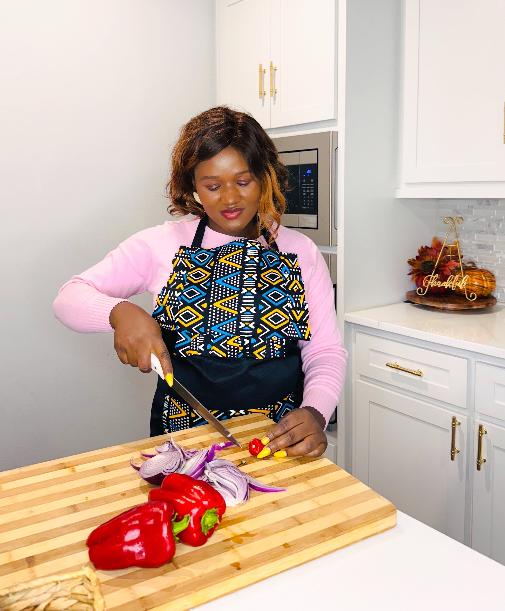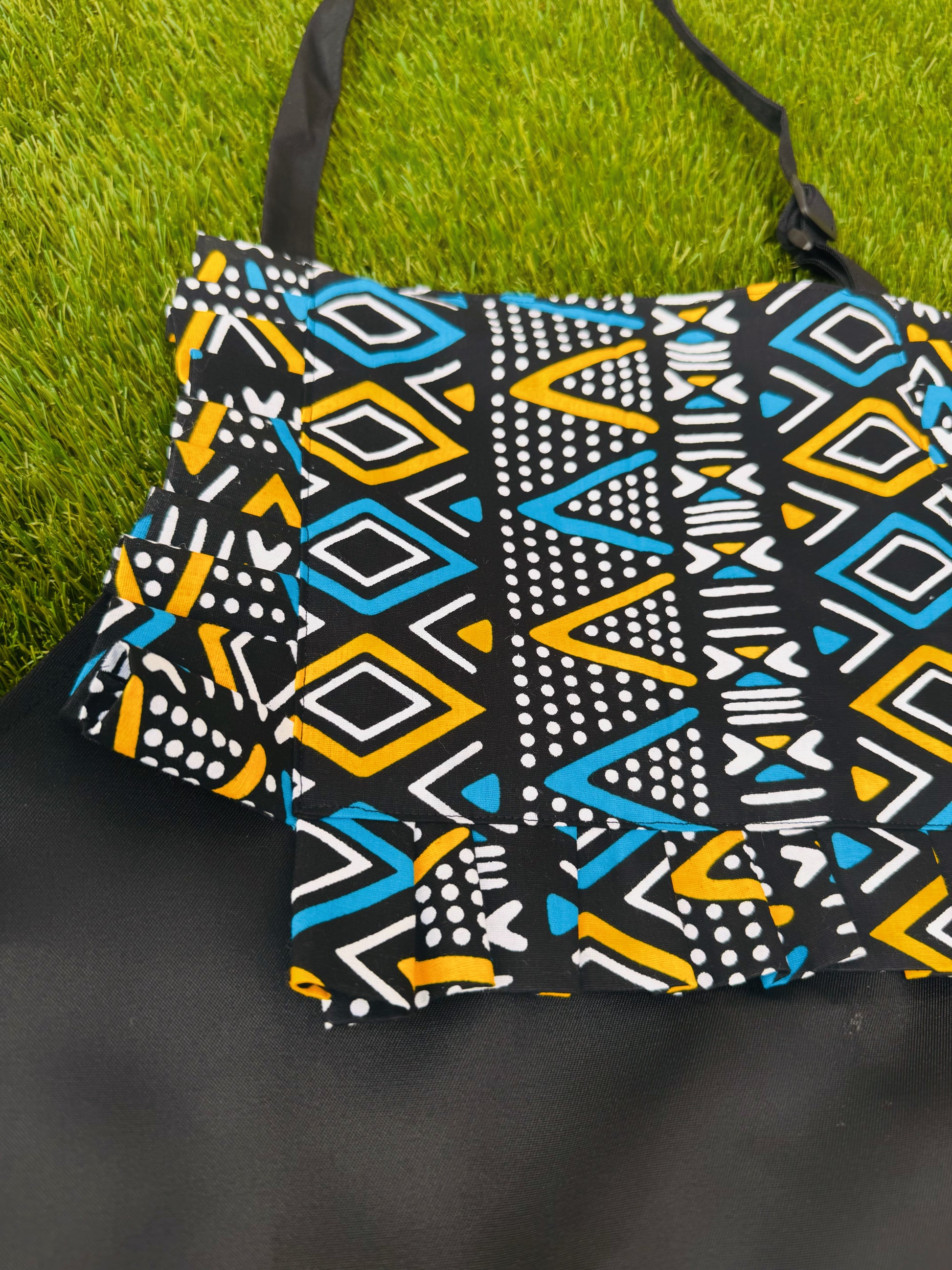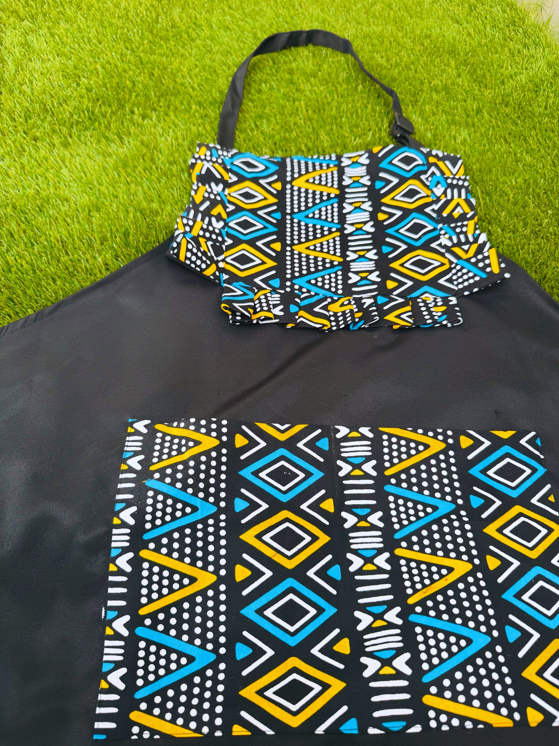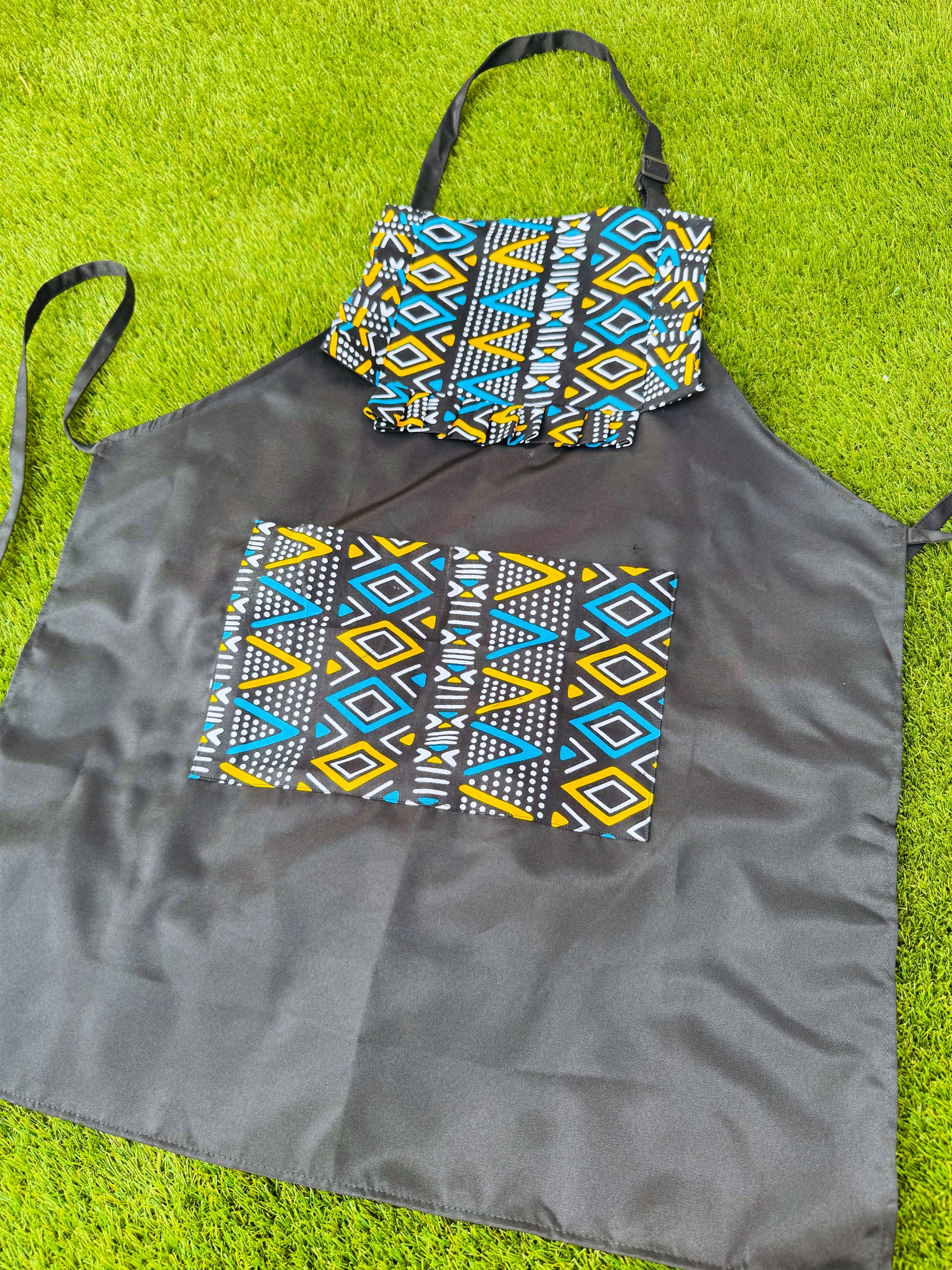 Celebrate culture and protect your clothes with our Preston Mudcloth African print kitchen apron. With its double pocket and side ties, it's both functional and stylish. The pleat design adds a touch of class, making it the perfect gift for yourself or a loved one.