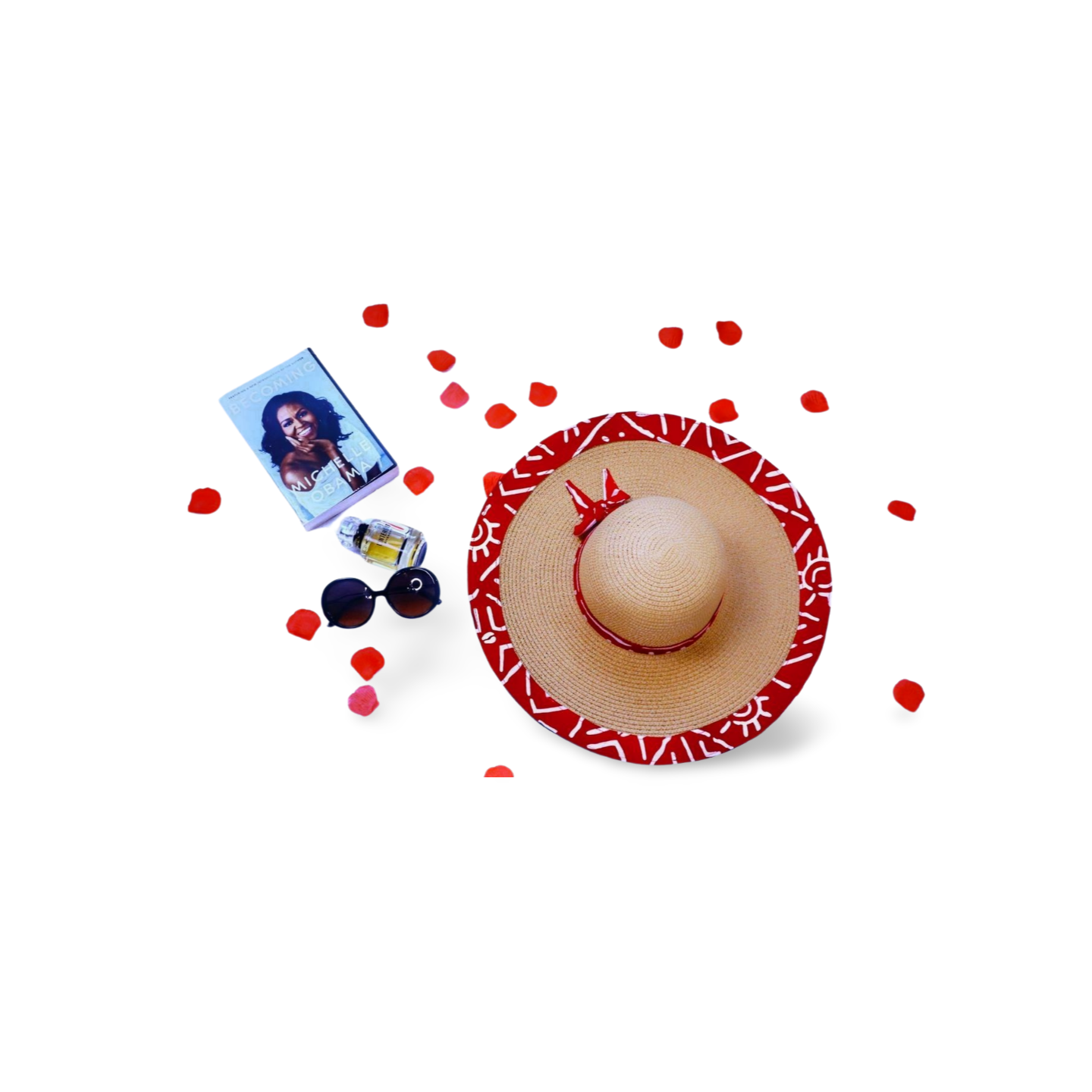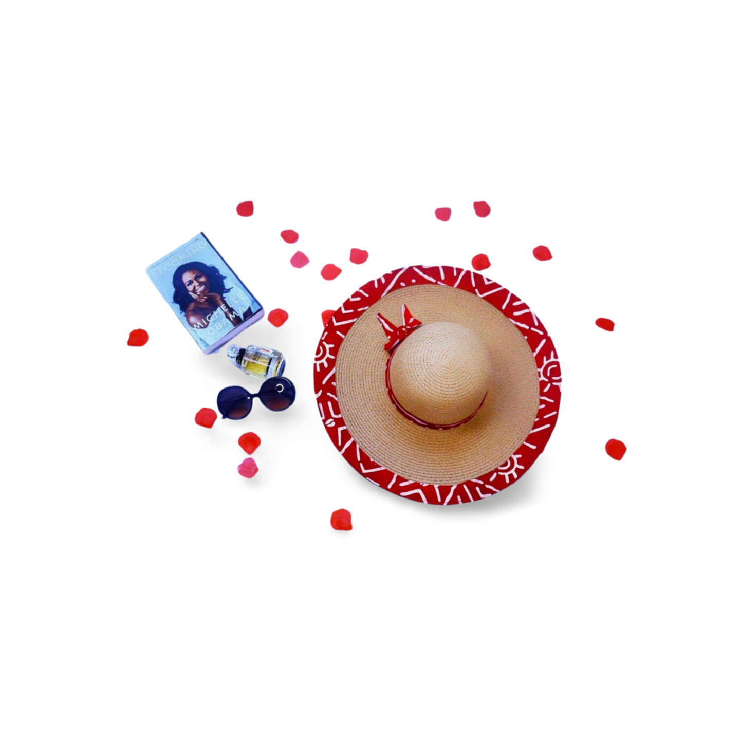 Seun Raffia beach sun Hat (Red Mudcloth)