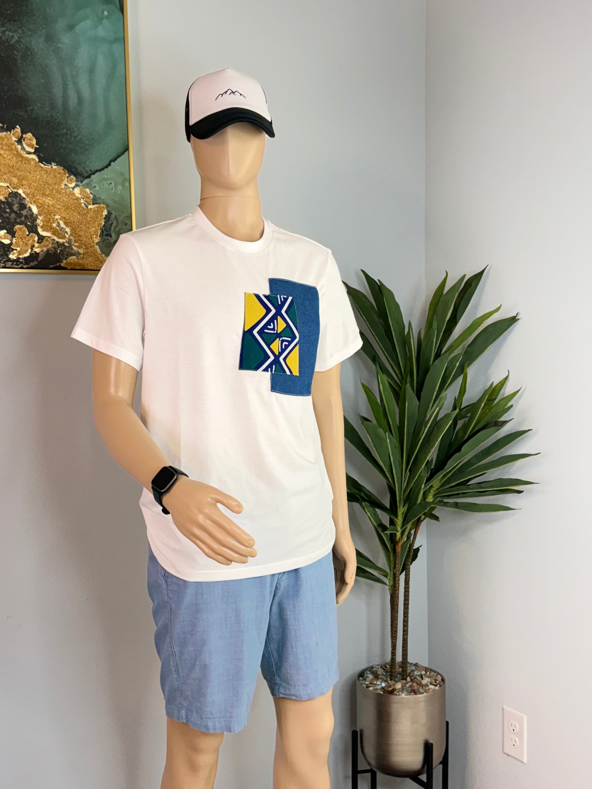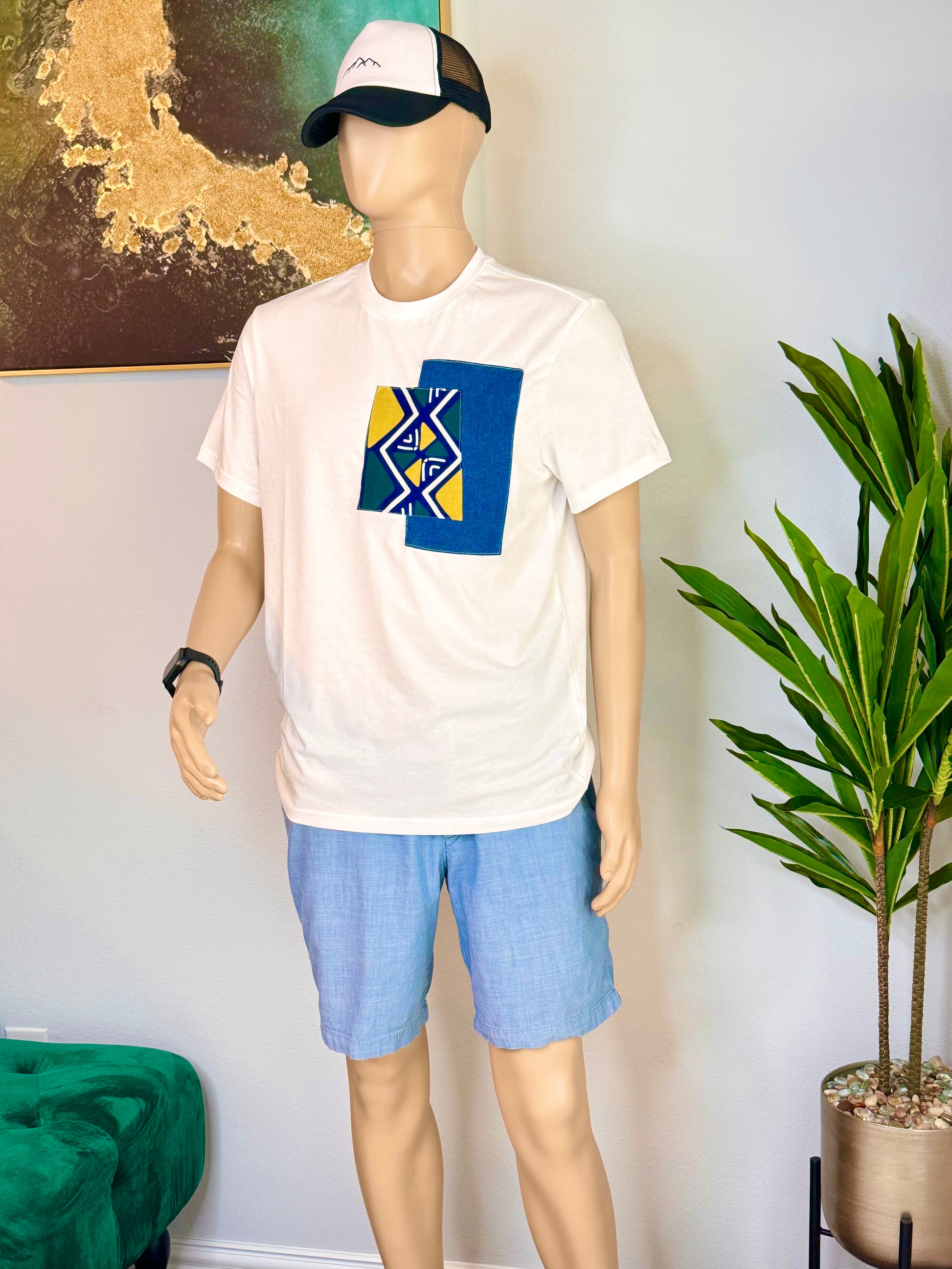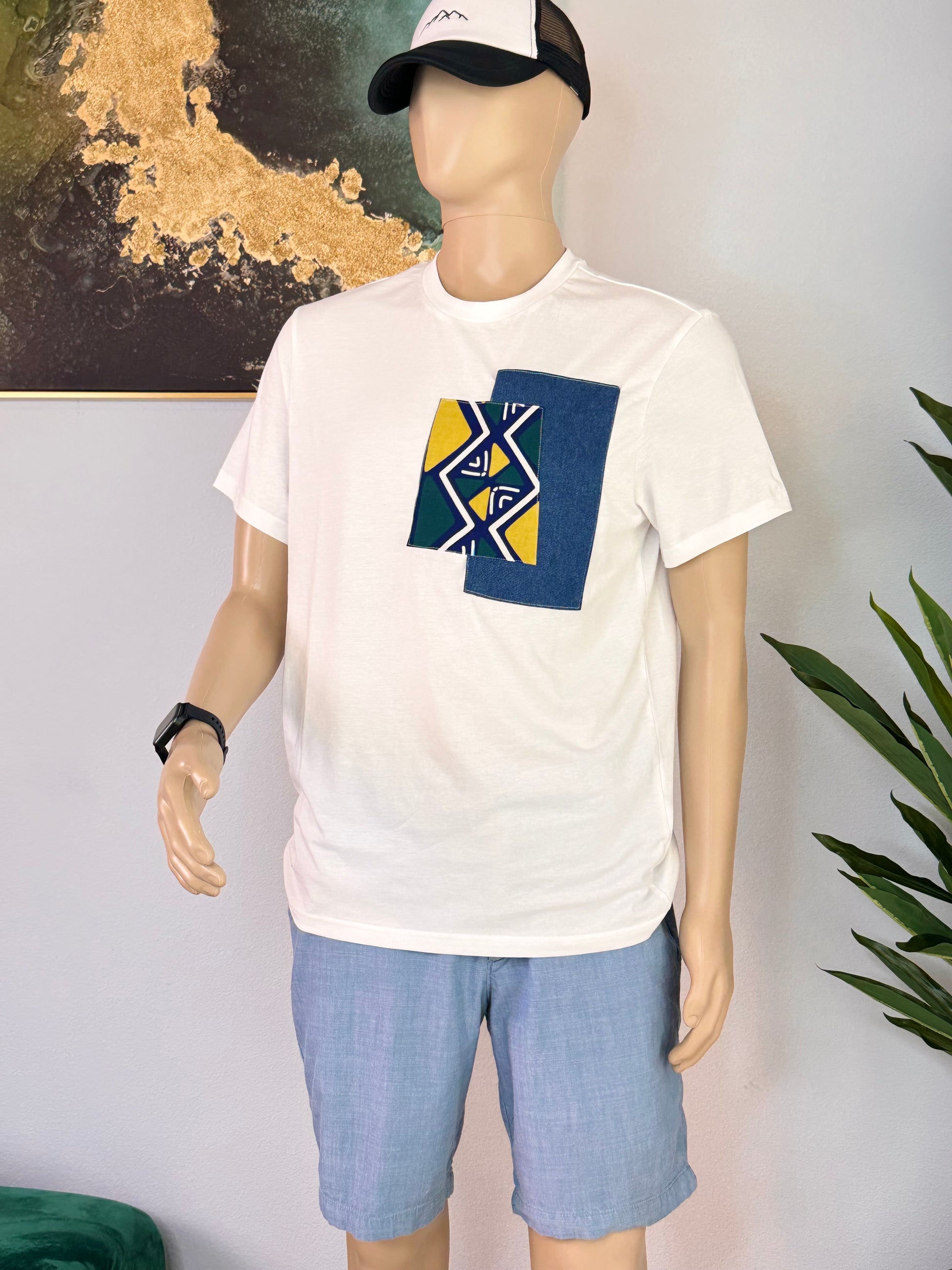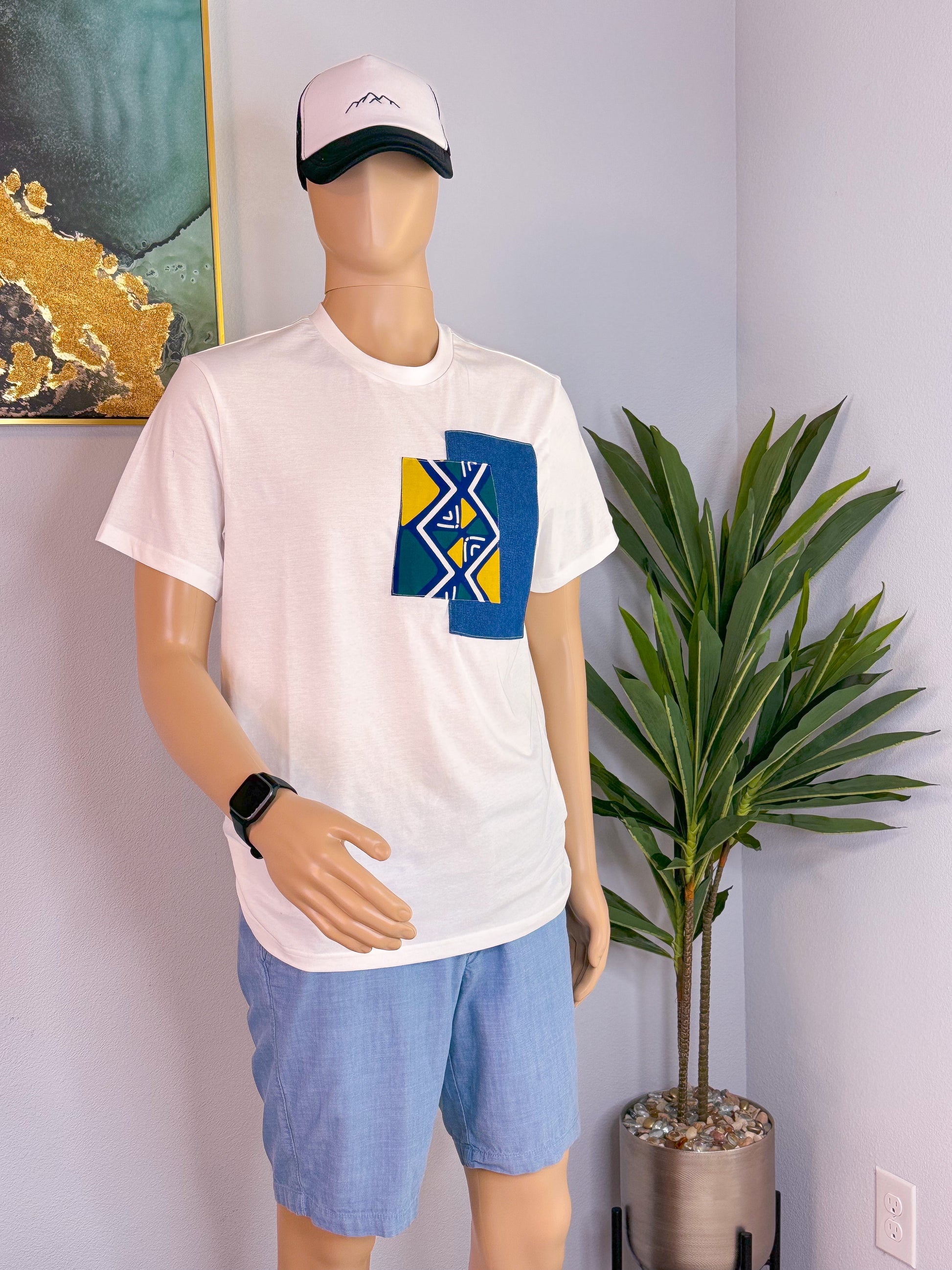 Get ready to make a statement with our Benzo Afrocentric African print Tshirt for Men! This Tshirt seamlessly blends solid cotton, denim, and vibrant African print ankara fabric for a truly unique and eye-catching design. Stand out from the crowd and show off your individuality with this one-of-a-kind piece.