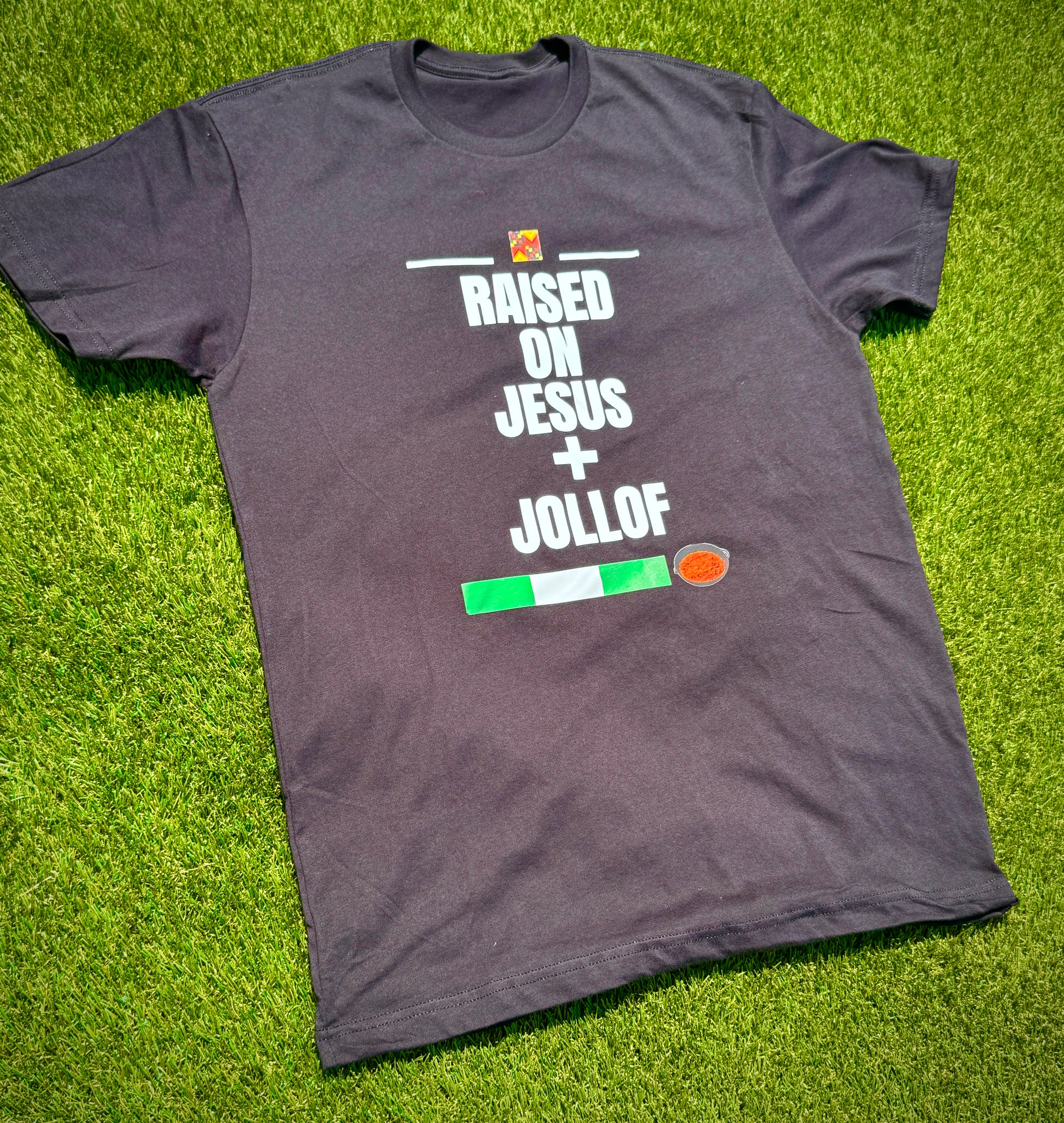 Our “Raised on Jesus + Jollof” tee is more than a conversation starter—it’s a cultural statement. Designed for the faith-filled man or woman who knows where her strength (and seasoning!) comes from, this shirt blends the richness of your belief with the flavor of your roots.