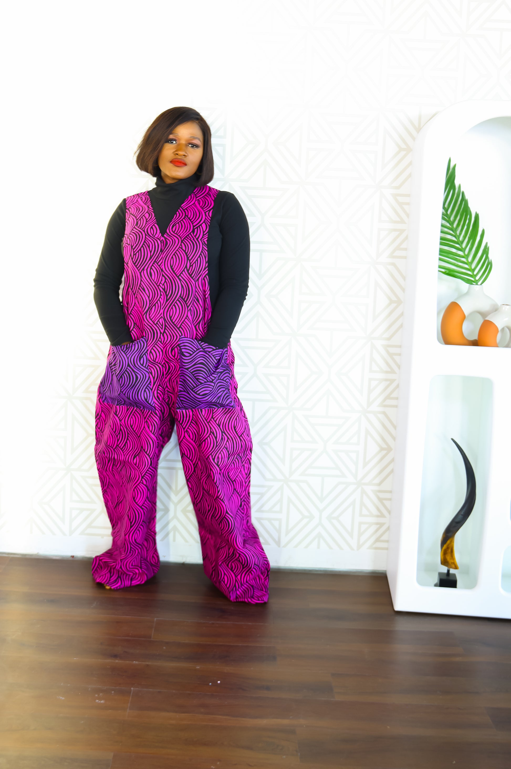 Experience comfort like never before with our Thrive African Women Ankara Print Dungaree. Made from 100% cotton, this stylish and versatile maxi jumpsuit is a must-have in every wardrobe. With its functional front pockets, you can easily dress it up or down for any occasion. Feel confident, look fabulous, and embrace the vibrant African culture with this unique piece.