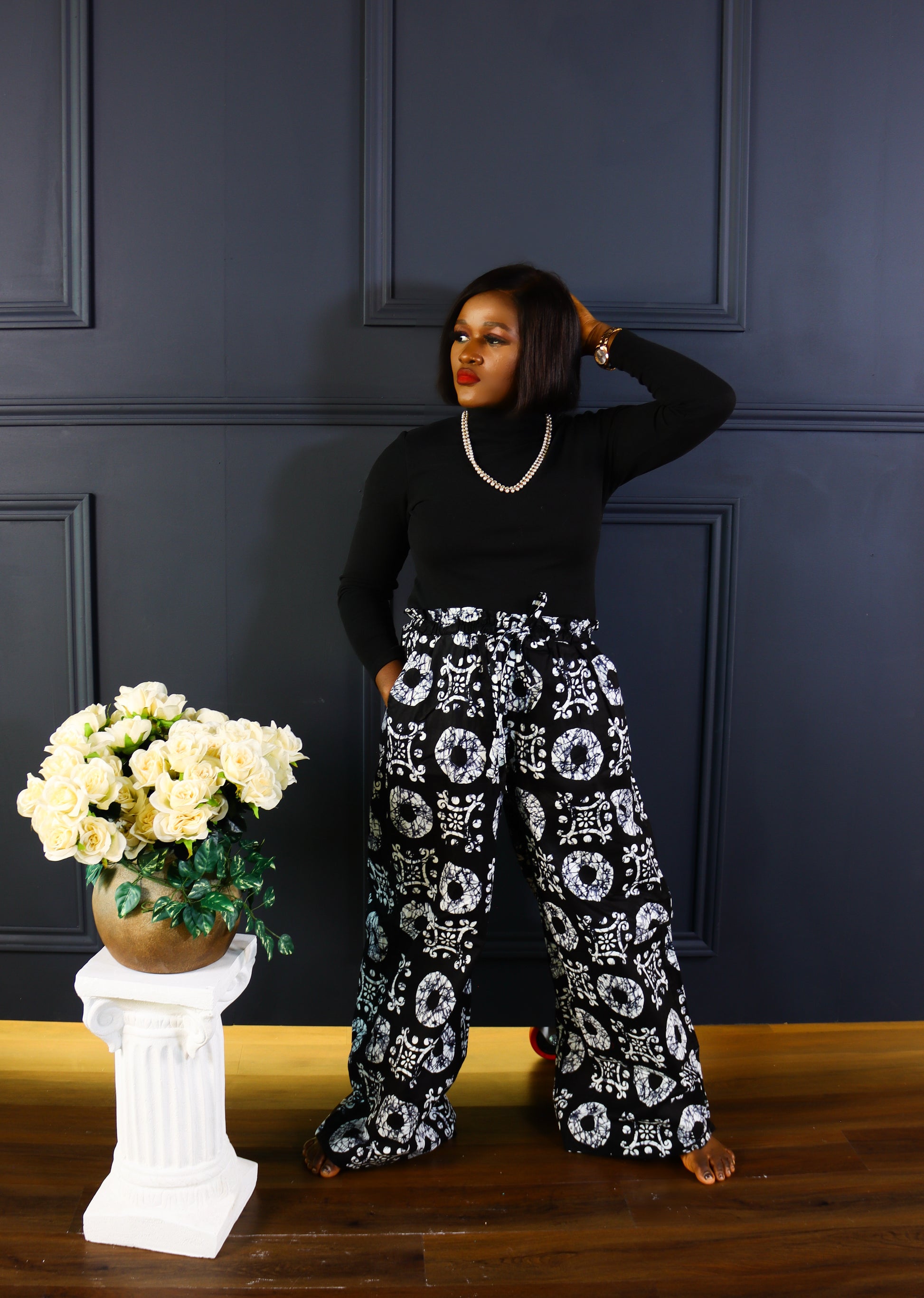 Introducing the Torewa ankara baggy palazzo pants. Crafted with a luxurious blend of 100% cotton fabric, these pants feature a stretchy elastic waistband for a comfortable fit. Designed to enhance your body shape, these pants are the perfect addition to your wardrobe for a sophisticated and exclusive look.