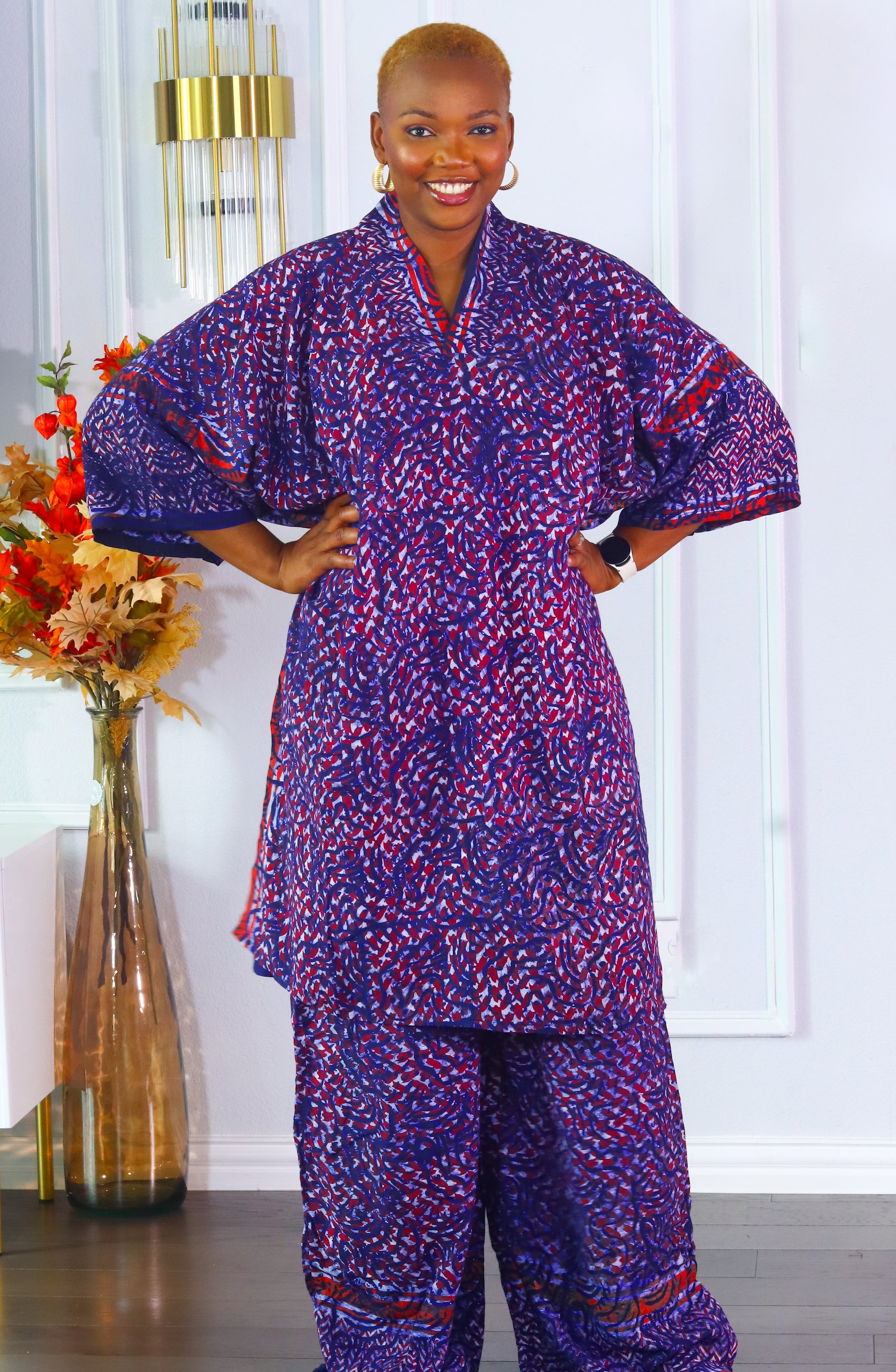 This Zion Adire crepe cotton two-piece outfit blends comfort and style effortlessly. Crafted from breathable cotton, it offers lightweight ease while maintaining a smooth, sophisticated silhouette. The rich colors and relaxed fit make it perfect for those who appreciate simple yet refined fashion, ensuring you feel poised and comfortable throughout the day.